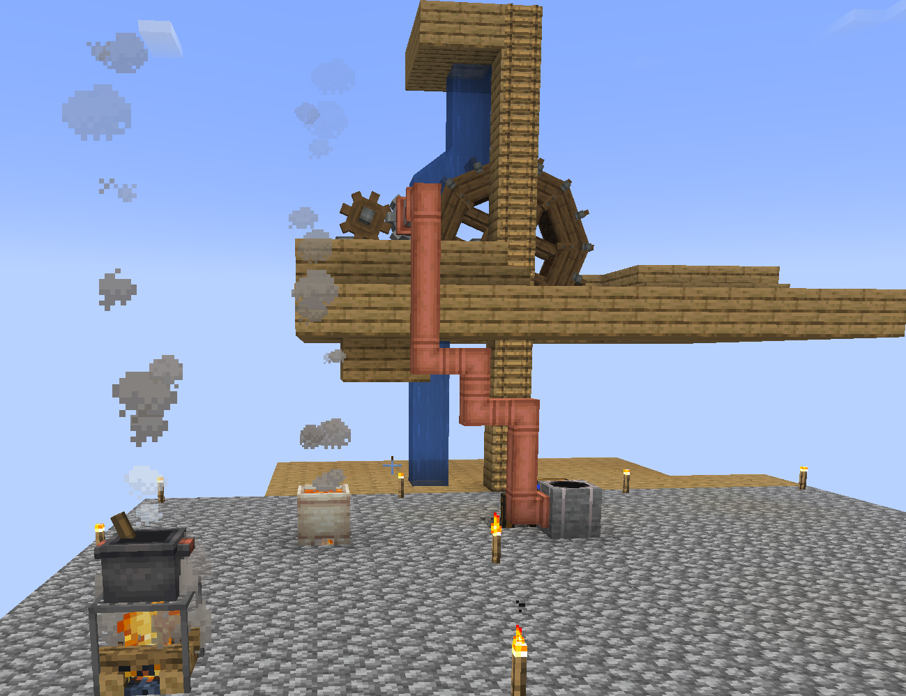 >>553674889>remarkably inelegantWhy? Looks perfectly fine to me.It's resonably compact while also being pretty obvious what;s doing what and what goes where. Plus it's allow sensible access to all parts. The water supply and transport could be probably make a bit smaller, but it's by no mean eyesore or mess right now.I seriously don't get the overwhelmingly autistic strive to make everything cramped into 3x3 area, making it looking like an unholly tangle of blocks, pipes and cables, where any attmpt in aleration require complete rebulid of the whole contraption. It's like modern electronics - 'no user serviceable parts inside' and everything is encased in solid block of plastic resin.You have the fucking whole world at your disposal, make use of this space so you can approach your machines to service, maintain and expand them instead of just blowing the whole shit up and then rebuilding it from scratch because it will be faster that trying to untangle that absolute mess you created.