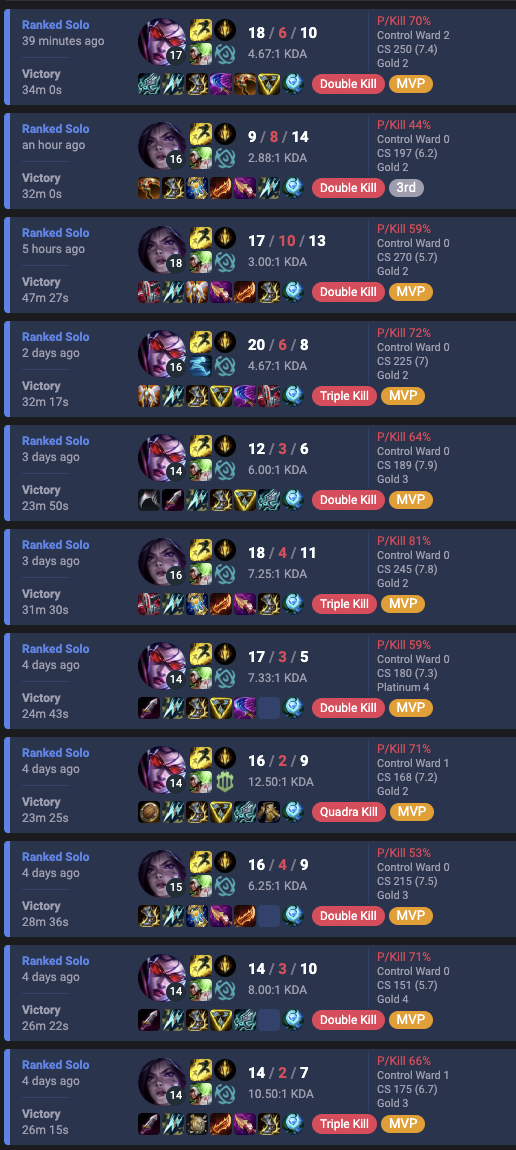 >>553545070Gold IV, but I usually end up somewhere in plat.Naafiri W is one of the most broken basic abilities in the game, and no one can tell me otherwise.
