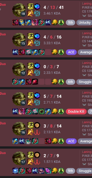 >>553623724"Don't worry guys, the people absolutely beating the shit out of us are BAD and we're BETTER, that's why we're LOSING so hard. We will definitely magically start beating them once they have 3000 gold more and two more levels than us because we're the better players."