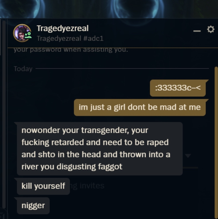 nepotism is the gift that keeps on givinghttps://streamable.com/991irbhttps://streamable.com/oqcpruput riot games developer on your resume you fucking stupid piece of shit i dare you