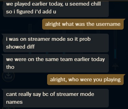 anybody else been getting added by lvl 10-15 accounts who claim to be someone from an earlier game and ask to duo (and also have a normal conversation with you)? i know this is a scam but it seems retardedly elaborate when they don't even try to get anything out of you initially