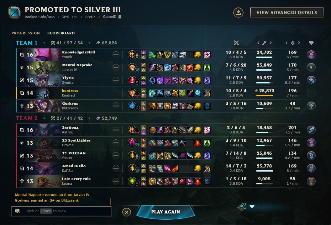 The games this season are way too fast. They said the gold generation from towers having plates and shit is the same but it doesn't feel it at all. Top laners are also consistently 2-3 levels (minimum) above the curve no matter how well everyone is doing and they then spend the entire game split pushing rather than contributing to the team in any meaningful way. Weird start to the season.