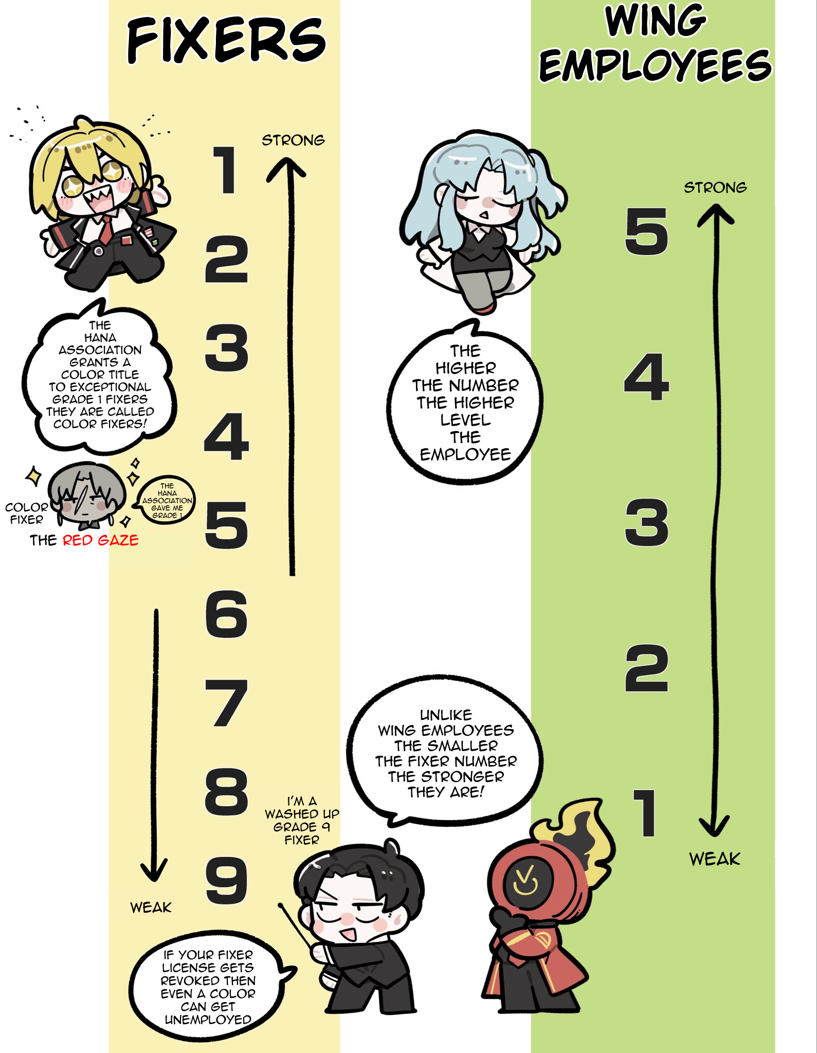 >>553568000not exactlycopy pasted from wiki.gg>The Tres Associations is responsible for managing Workshops all through the City. Their Fixers' duties include reviewing newly designed weapons, filing applications to the Head to register and patent the creations, and charging taxes relative to them. Their domain includes weapons, gadgets, and prosthetics models.[1] When a design is rejected by the Association, it cannot be produced and distributed for commercial use in its current state, although it can still be kept for personal use.[2] Upon rejection, the Association will at times send feedback suggesting how to improve the designs to a passable level.[3]>Like other Associations, Tres Association holds qualification exams for Fixers, including Workshop exams,[4] presumably to obtain the necessary qualifications to run a Workshop.