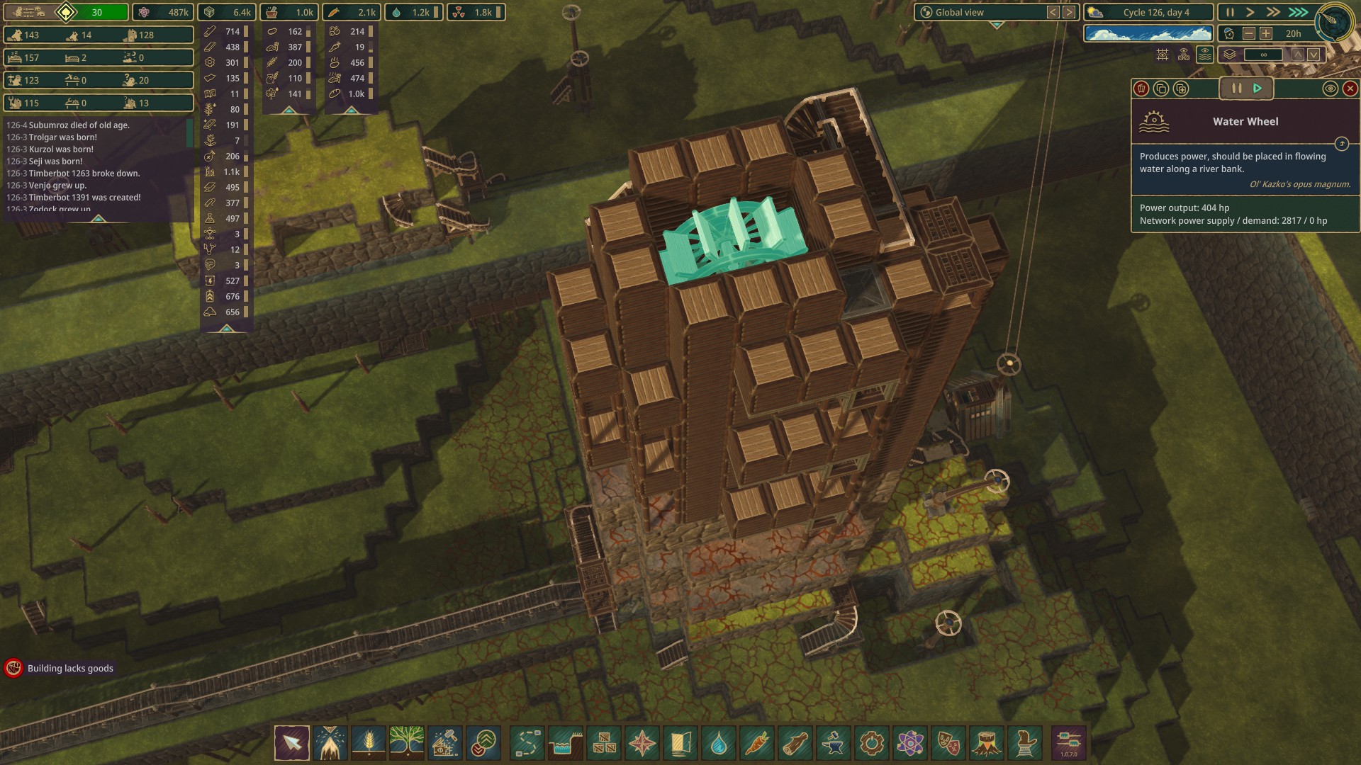 The only possible reason I would have to do this encased badwater wheel tower outside of "because I want to" is if I was playing a tiny map and had no horizontal space to spareNote the prototype I haven't deleted yet in the distance
