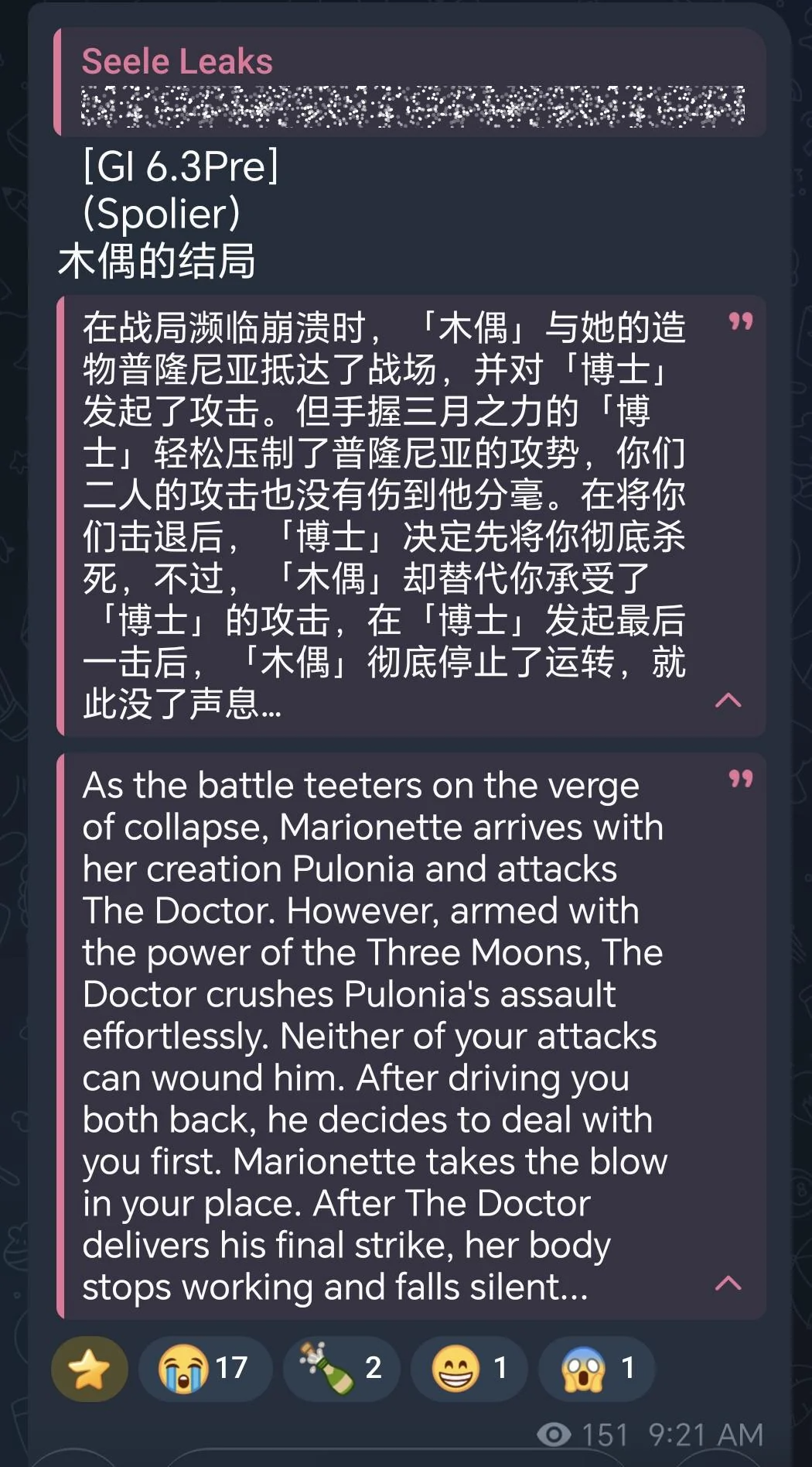 >>553578910Genshin is a baby story but that is unrelated.Give me one person who said its babyish because Dottore die,s because I'm actually curious