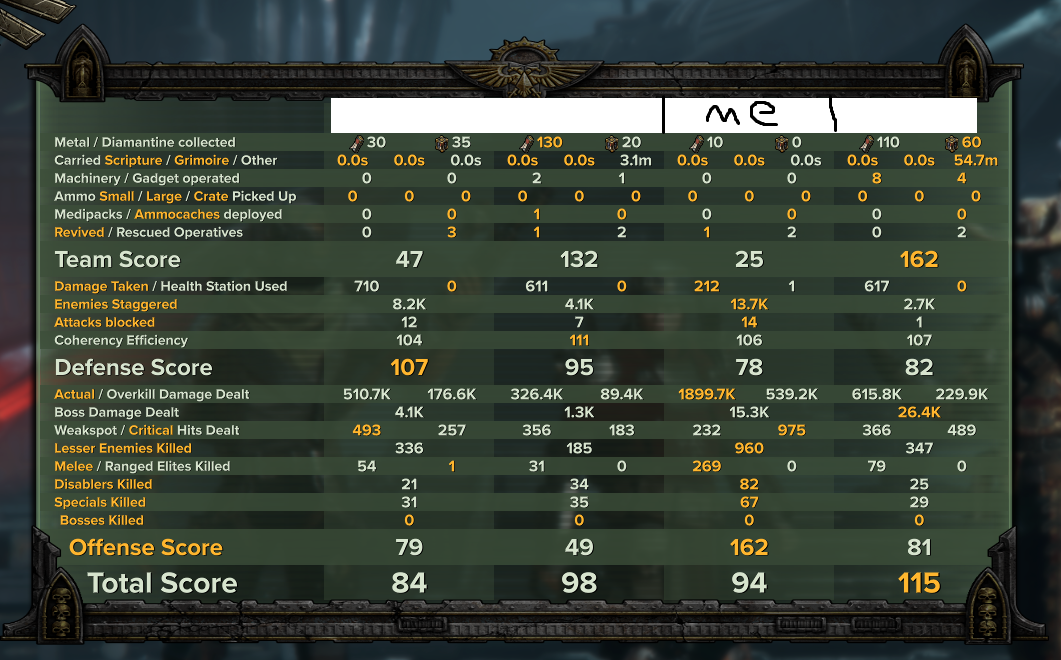 >New class: Administratum Adept>Passive Ability: auto completes minigames with a 3 second button hold>Unique Weapons: Power Quill - finesse weapon, special flicks ink in eyes to stagger>Step Stool: for reaching those high shelves, horde clear with high stagger>Barcode Scanning Gun: dewey decimal? Do we ever!>Blitz: Cower - drops all aggro, scamper off in stealth leaving a trail of urine, lasts for 10 seconds then enemies follow the trail to you.