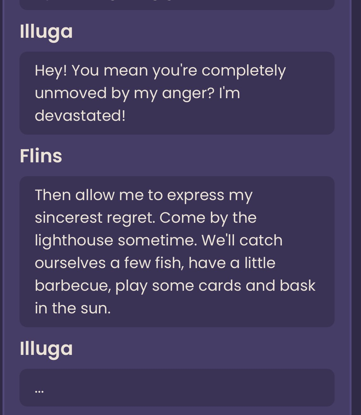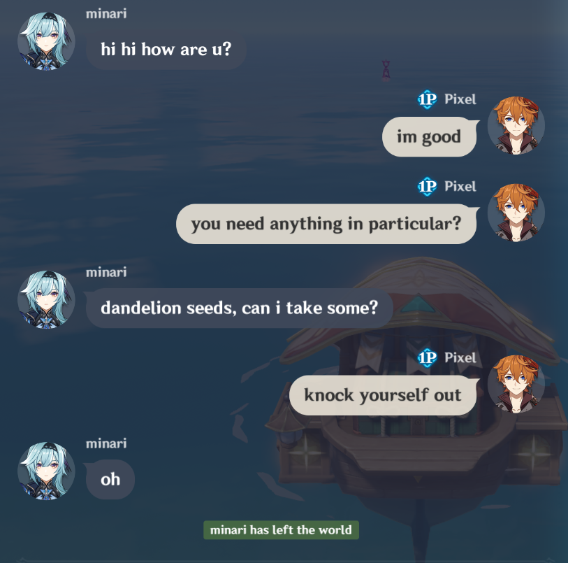 I think Wanderer could be well written if he met Kazuha and offered to be killed by his sword in an honour killing of sorts. Hyv are cowards so they won't kill him. But that could actually un-mess his character writing somewhat. That or Kazuha telling him to get fucking lost and that he'll never forgive him, but again hyv is cringe and they refuse to let playable characters have anything other than happy endings. So wanderer sucks because his ending should be death or at least very bittersweet.