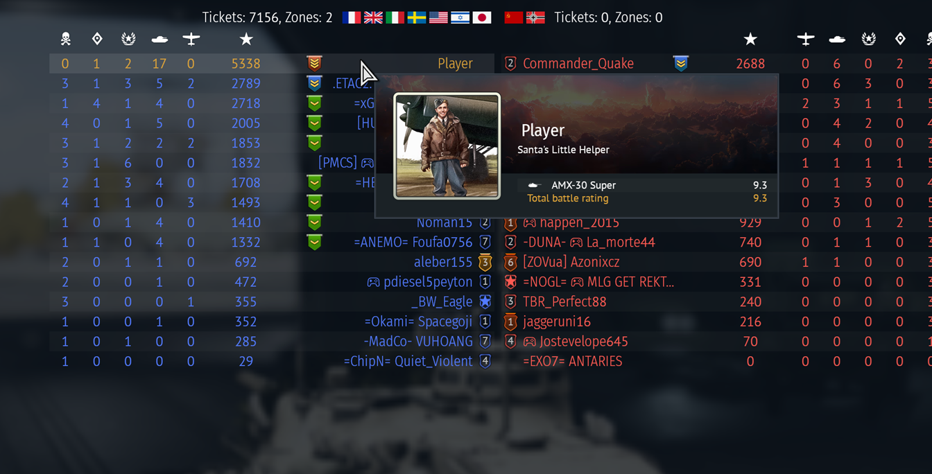 Maybe 5th game over 5k points (full uptier btw.)AMX-30 Super is really very good but it fucking sucks there's no other premium to go with it. Every nation needs a 9.3 Prem MBT and LT to grind out a la TAM 2IP-Leo 1 L/44 (and formerly Khalid-Rooikat 105).