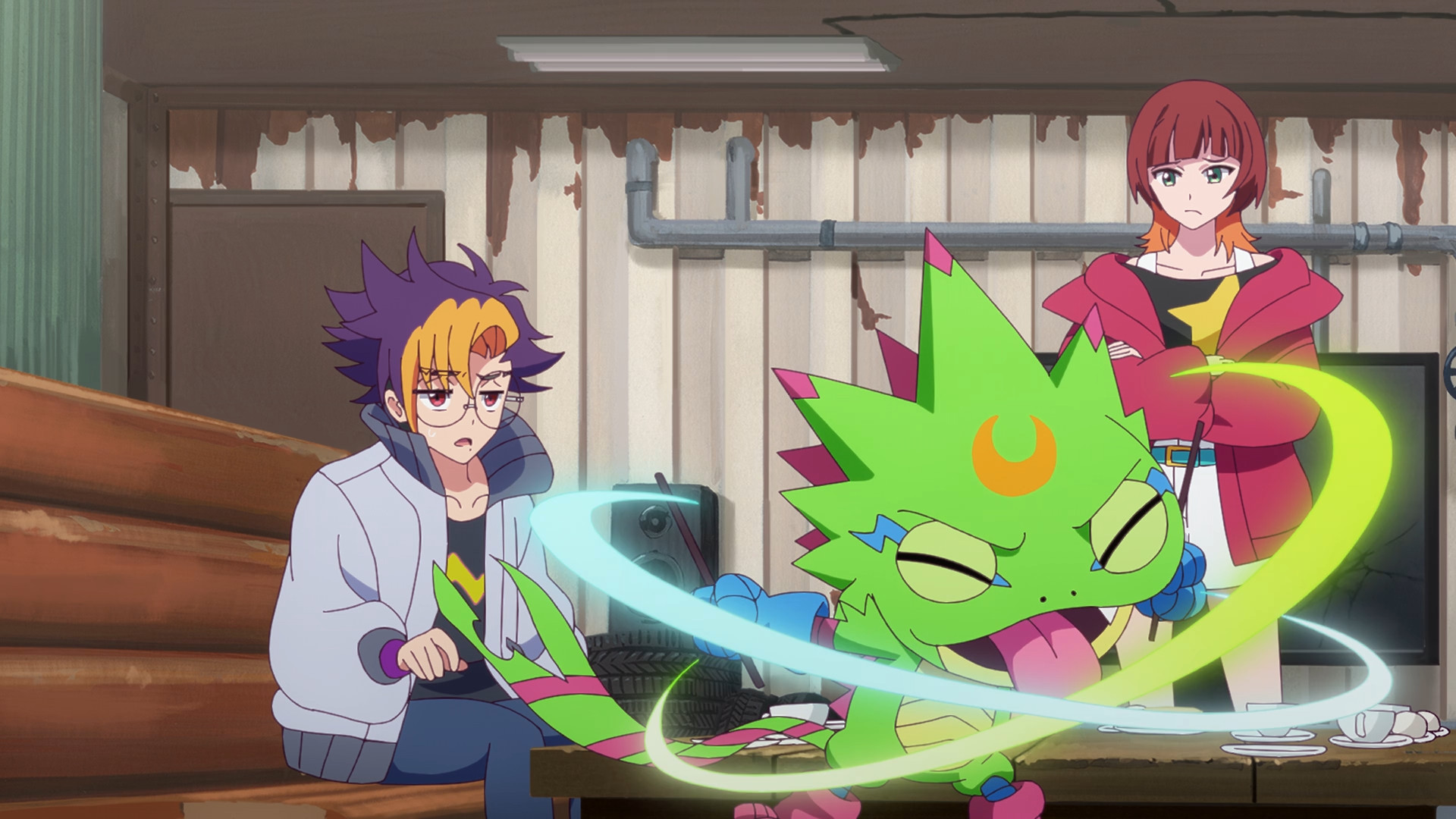 Erlangmon episode but he has the personality of a kpop idol and has miko modes as his backup dancers