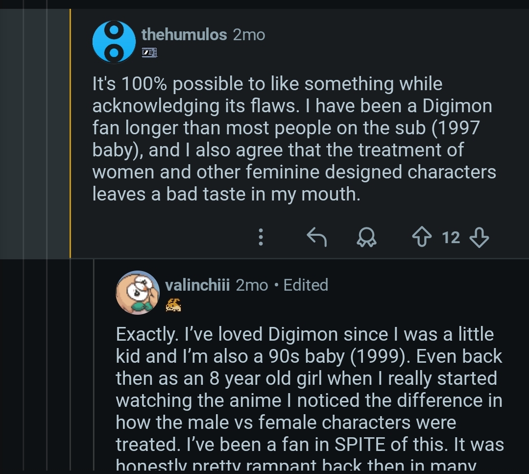>>553635686It's her tired vibe, I prefer womon that are "more yang than yin", like Calmaramon, Tinkermon, Arukenimon, BanchoLillymon, Witchmon...And I'm not a big fan of how her belt looks in 3D, but that's just a little nitpick regarding the games.>>553631674>Based fellow Pteramon and Lilithmon X enjoyerThanks, I've been working on my favorite Digimon chart too, but for a few weeks since I'm sort of a newcomer to the series (except for having watched the movie and some random episodes).For mine, I've been trying to fit them into lines by placing some that aren't top favorites—but I still like—to bridge some gaps.