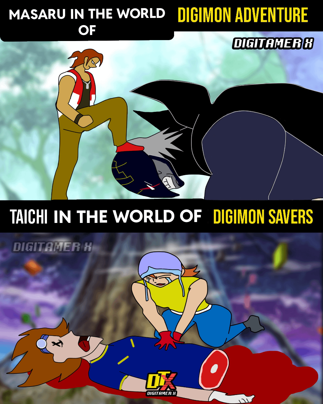 >>553704813>Lucemon and Alphamon teach Guilmon how to wield the power of the digital hazard without going berserk, resulting in an alternative to Dukemon Crimson Mode that has Megidramon's wings and arm blades>Hacker woman that jailbroke her digivice and mods their digimon partner to get her to evolve into something with whatever kind of attack or trait is needed at the moment (Her partner his a doll themed puppet digimon that's into it)>Analogman, Digimon Kaiser, and Dr. Kurata team up but quickly start getting under each others skin and sabotaging each other's contributions to the big evil plan because they each thing the other two is being racist against digimon the wrong waybut mostly I just like coming up with nebulously themed area factions in an imaginary "Xros Wars but Good" digimon rpg that would be a successor to 2003