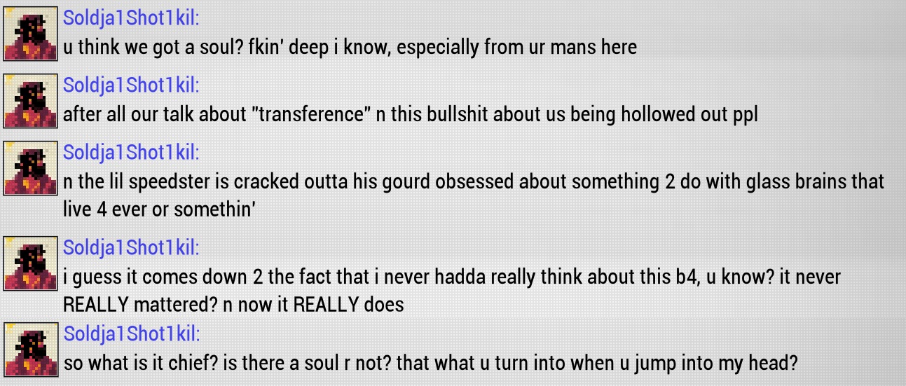 IS THAT SENTIMENTALITY IN MY HECKING SPACE NINJA GAME???? SAVE ME STEVE AHHHHHH