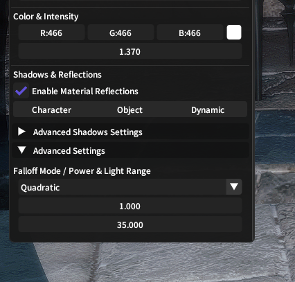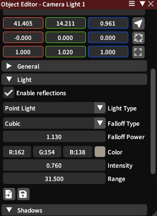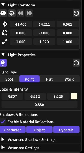 >>553633432A spot light is, well a spot light. Like a flashlight but bigger. A point light is a single point that radiates light in all directions, like the Sun. For three point lights, you usually want spotlights. Flat lights are just spotlights that are square instead of circular.>really unnatural/blown out or completely invisibleBoth Ktisis and Brio lights have the same setting (I think Brio copied Ktisis's messaging) called Falloff power. Basically as you increase it, the light gets "smoother" in a sense. This is a bit different from intensity, but you can play around with it. The simplest thing I do is just set up your three lights, toggle on all the shadows and push the falloff power to like 2-3 and intensity to maybe 0.5.