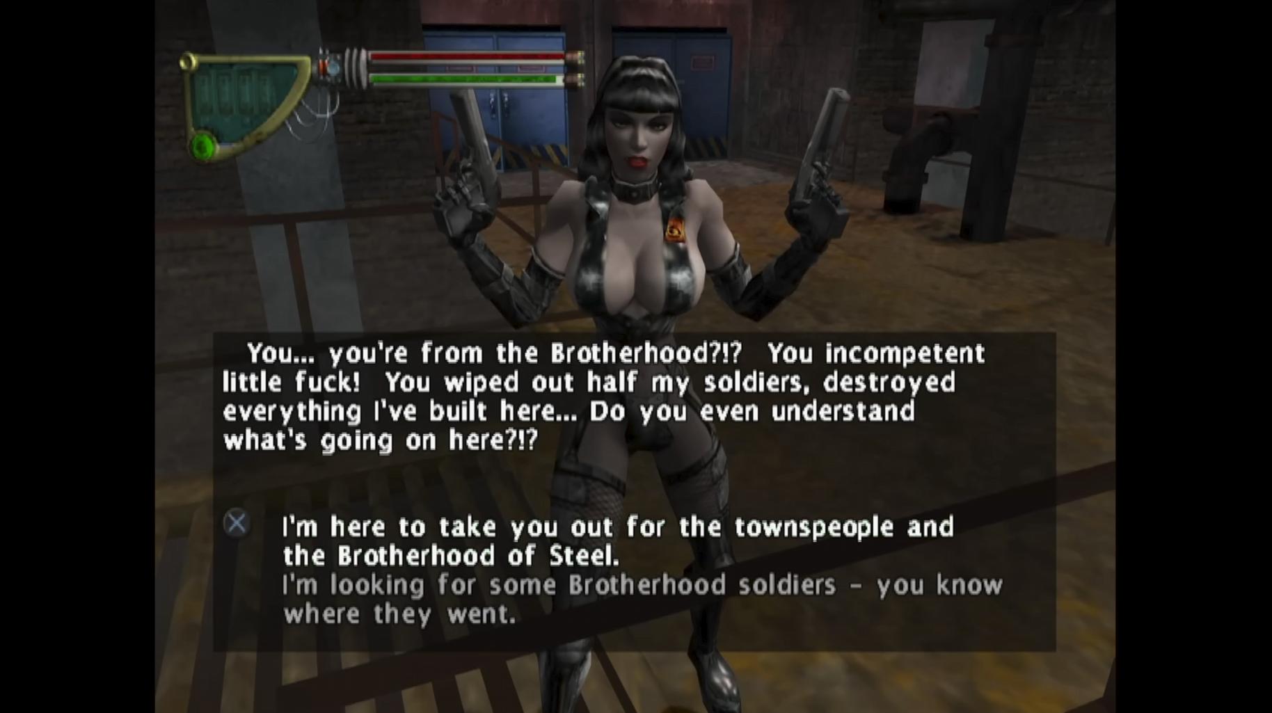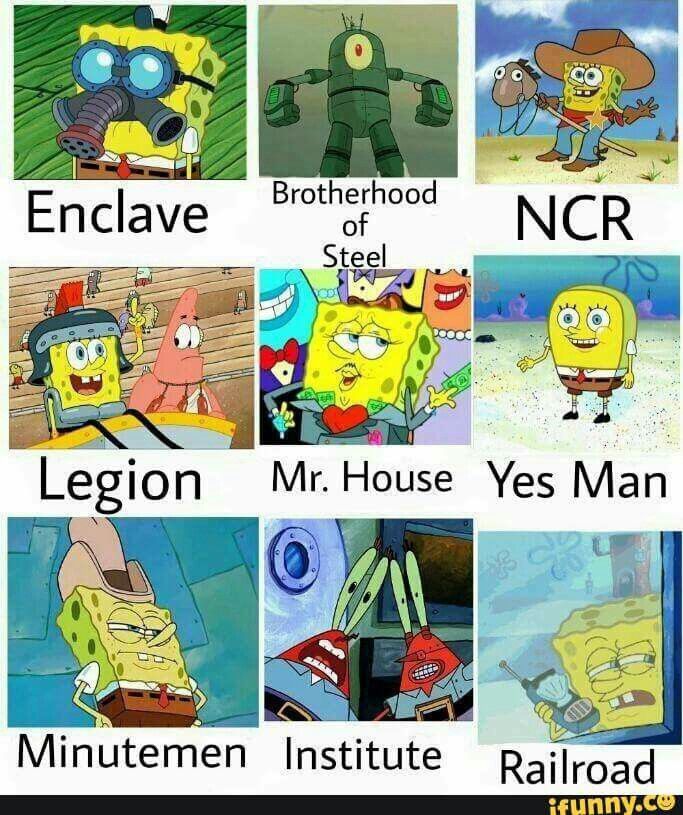 >>553642018The thing is they tried to make it like there's one big bad but honestly each faction sucks in their own right. The minuteman are a bunch of cosplayers who literally fell apart and their best answer is a granny addicted to doing drugs who can tell the future by doing drugs but also will die if she does drugs. You're forced to side with them no matter what and they want to blow the instituteThe railroad are laughably stupid and will literally blow up the institute , the thing that could help them track and free synths and help them show the world that they're not all bad. The brotherhood want to exterminate literally everything that isn't human, not to dissimilar from the enclave in 3, they kind of suck but they also have good weapons and gear. If you decide against them you're forced to blow them up. Even though they have literally a flying machine that could be commandeered by any other factions. Also you can't persuade them out of being evil and They will also blow up the institute.The institute houses pre war technology, can only be accessed through teleportation and houses some of the world's greatest scientists. It's being ran by your son who is on the verge of death and entrusts you to run it after he dies. Can you potentially stop them from doing evil shit? maybe. Who knows? The game certainly doesn't.