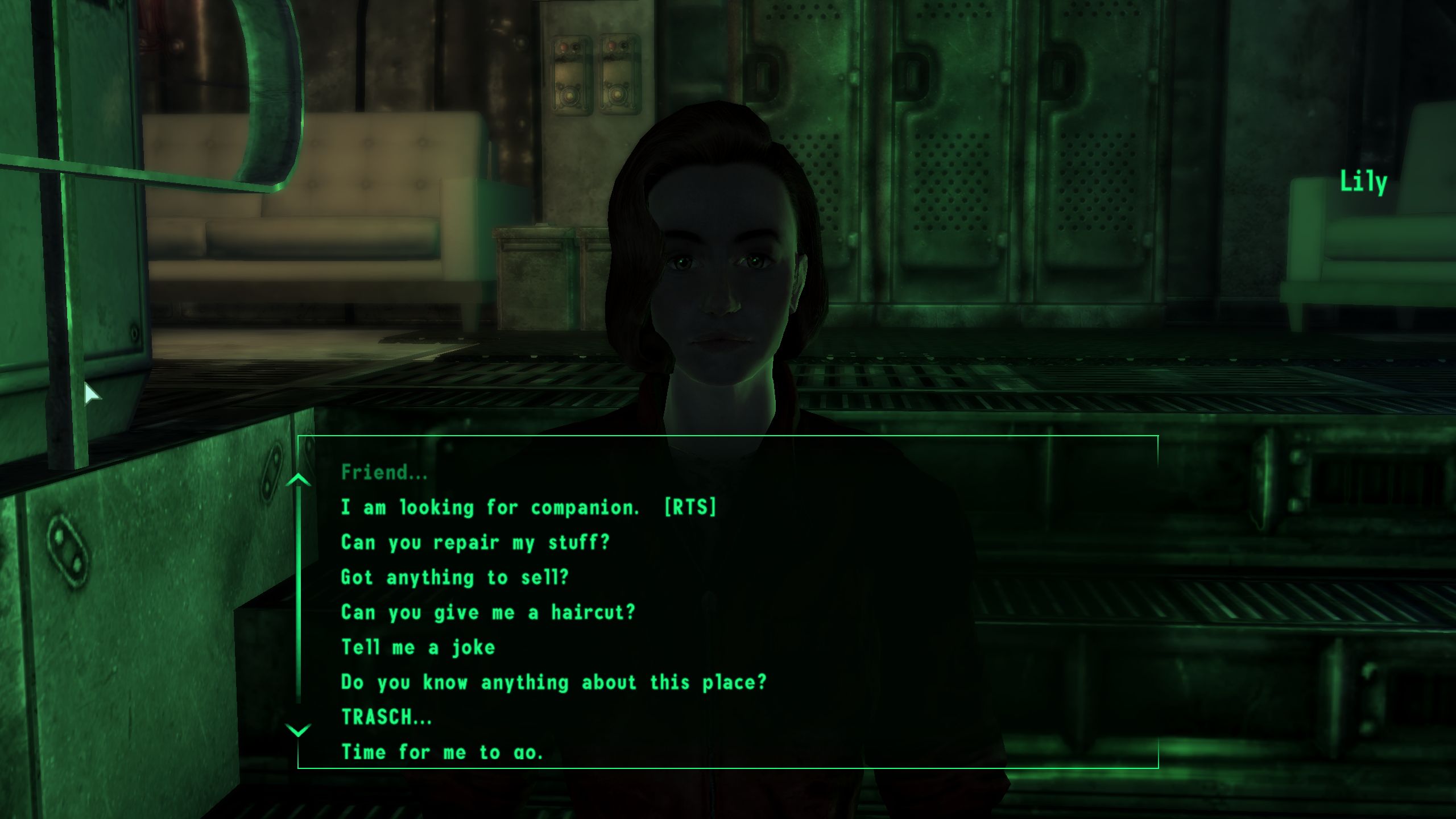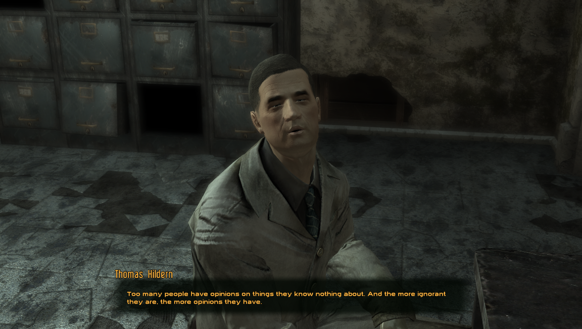>>554001994Correct. There's a lot of shit people like in Bethesda fallout, but those aren't it. They feel written by idiots.