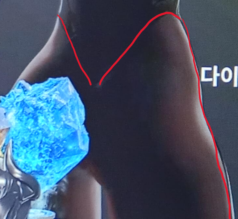 I can't tell the upper part of Dia's suit connect with the lower half to form a really high thong or if the devs might take the based route and just make her bare assed. Usually tweaking with the lighting can expose silhouettes like this (I got to see many a copslayers' buttholes this way) whoever made this graphic saw that coming.