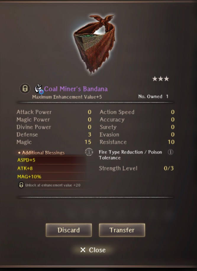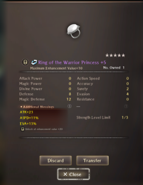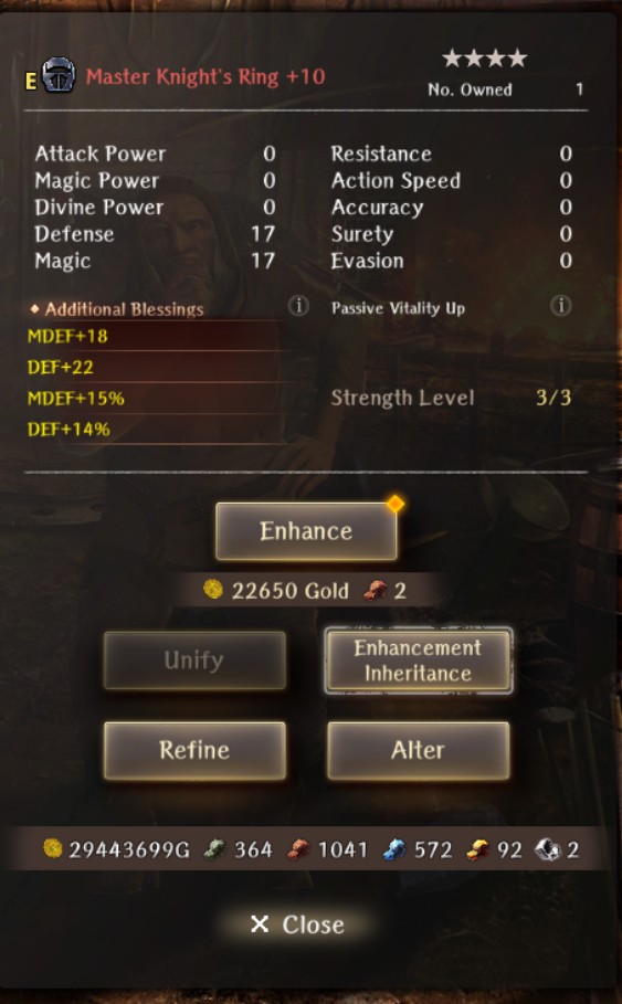 >>553645867I miss A1 and A2 where the only farming I did was for levels and I just used whatever new gear I picked up at +5 or rarely +10.Anyway, here's a 5* red steel ring with MDEF/MDEF%/RES%/DEF%