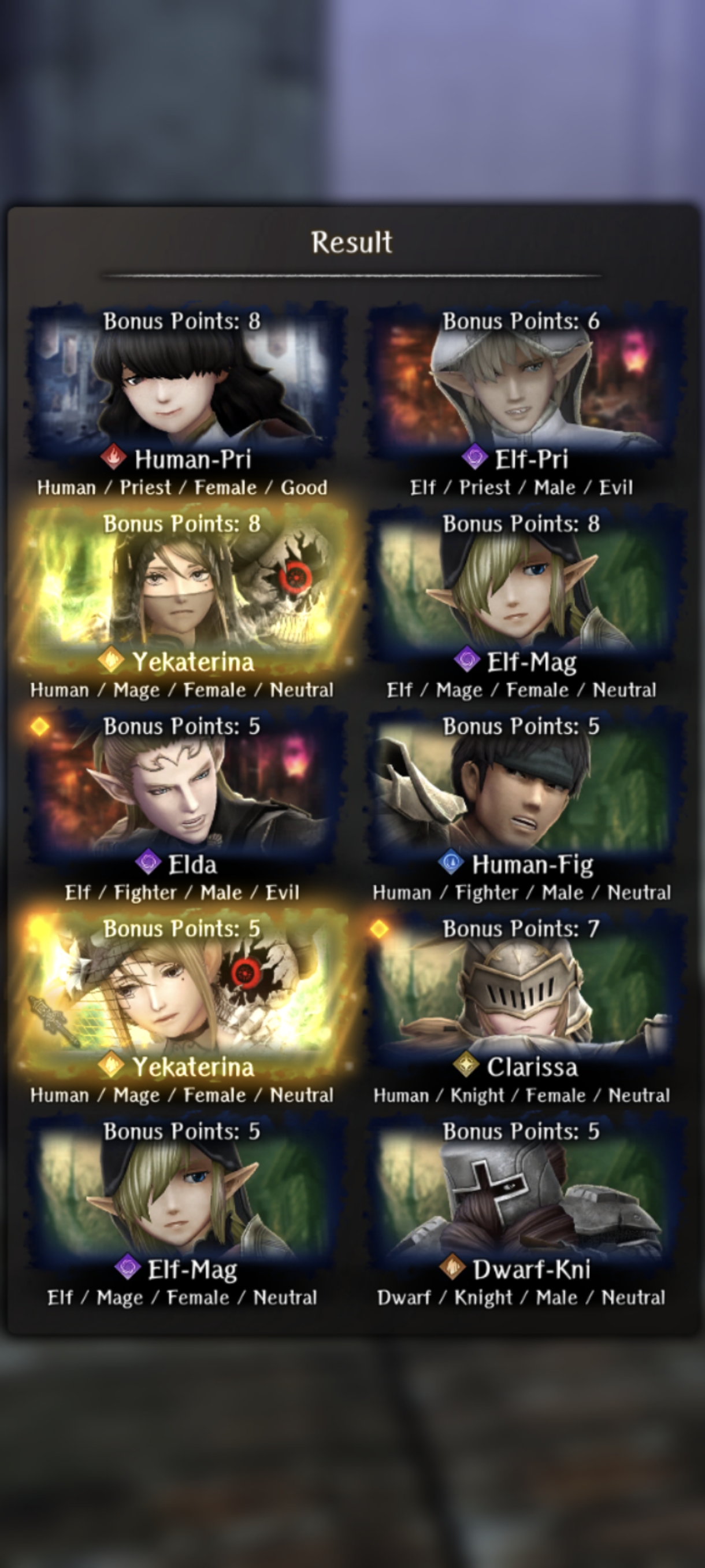 >>553858941There was this voting last year. There's 3 categories, but this one is "which adventurer has the highest power level in your party"