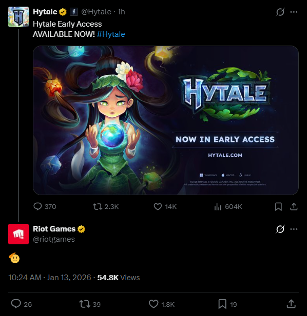 >>553696106>Hypixel releases a trailer for their Minecraft clone>Riot starts funding it, and eventually buys the studio and the IP>silence for a bit>Hytale announces they are basically remaking the game from the ground up (new engine, multiplatform). Basically they wanted it to go from minecraftb clone, toa roblox clone>a few updates here and there>Then, silence>last year, Riot announces the game is canceled and the studio is getting shut down>people start tagging the original owner>he says that he's sad nothing is releasing because he believes that what they had before the purchase was already in a playable state *(but pretty barebones)>makes Riot an offer to but the IP back>Riot sellls the IP back (to recoup some losses, I guess)>they basically just released the pre-Riot build today in early access>apparently it is printing money, it seems to be the new FOTM