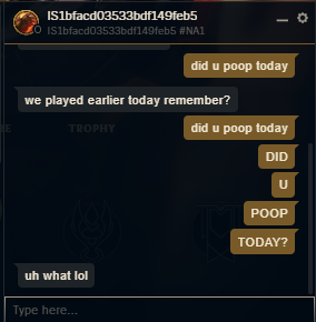 >>553694607Didn't think it would apply to the whole team, just the autofill one. Our jungler didn't seem autofilled, maybe our support. Still lost the following game because of Riot's taxmen.
