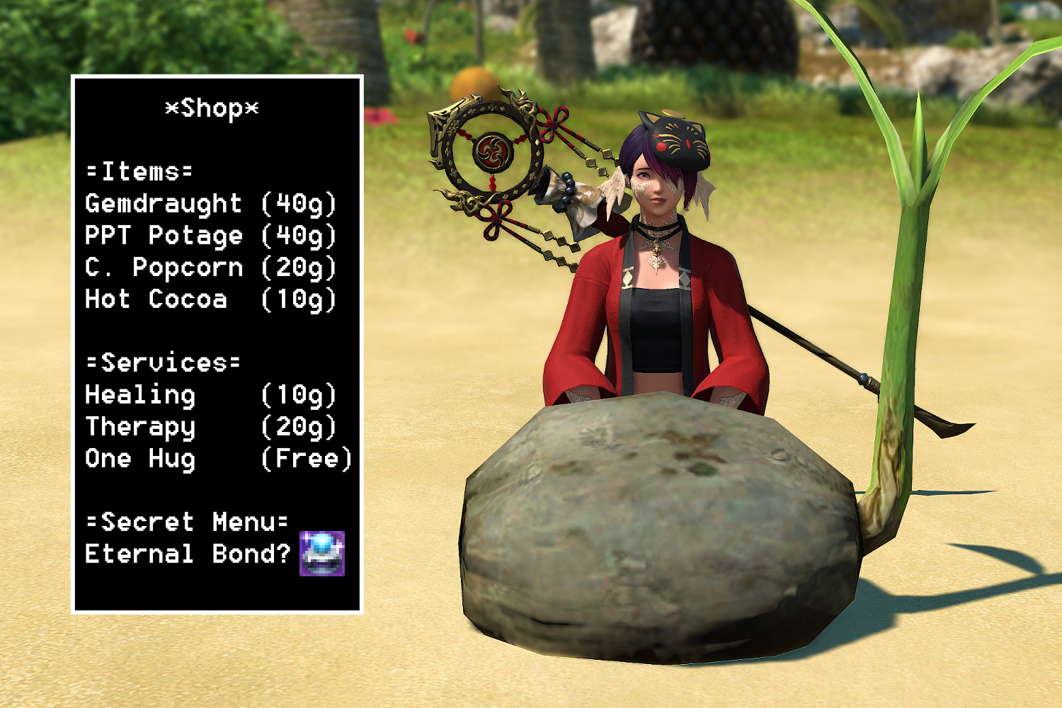 >send friend a silly mail out of the blue>they send me back 9m Gil of stuffAieeeeee