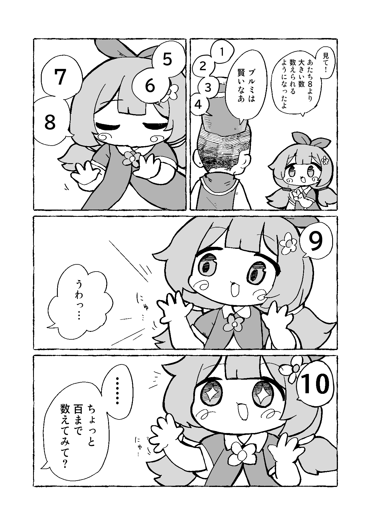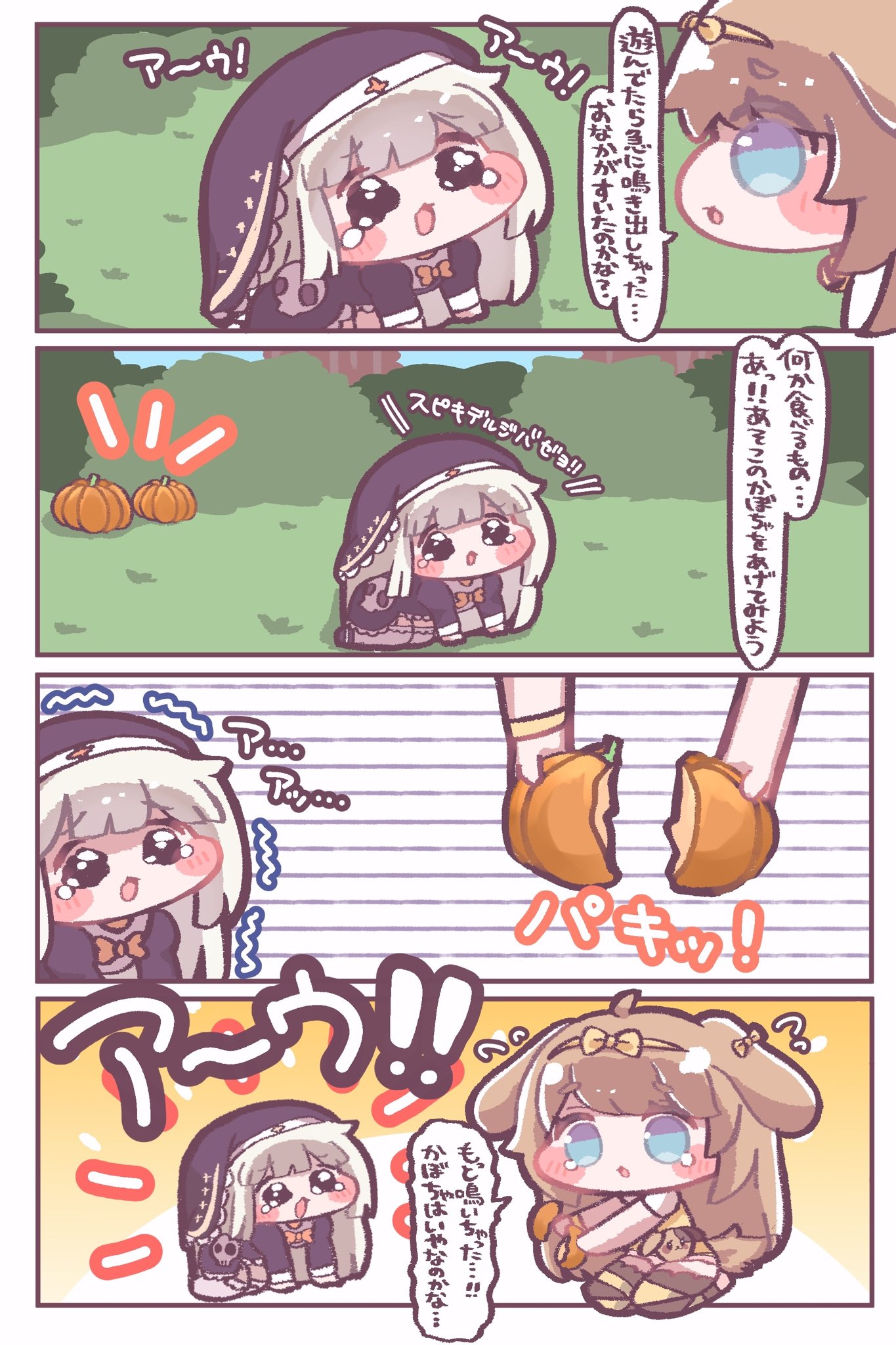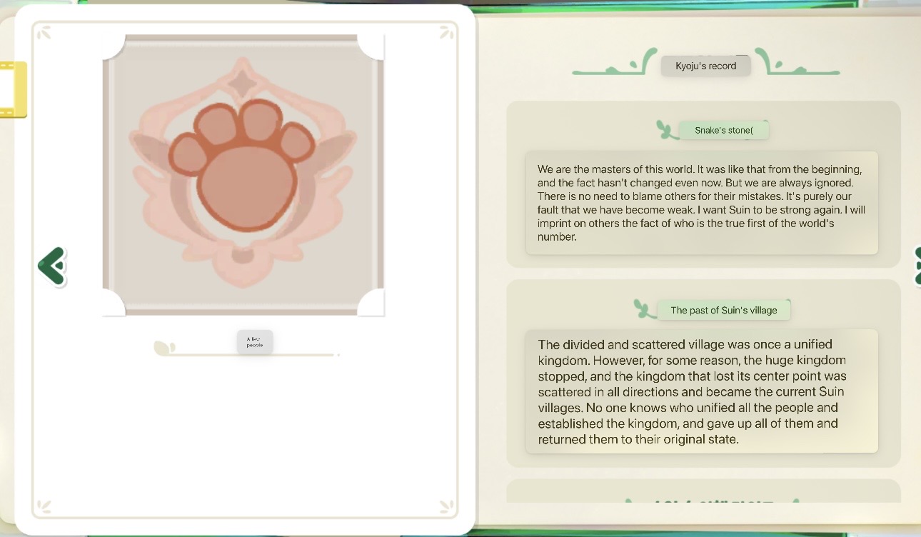 >>553636936>Top right: Hobagi Chowayo!>Top left: Supiki's "Auuu" sound>Bottom right: The caption text says "A Supiki will show it's child to an owner it trusts" The owner is saying "Awww, so tiny. Thank you!">Bottom left: The owner is saying "You're full of energy" and tiny supiki is saying "Chowaya!"So says random AI TN's