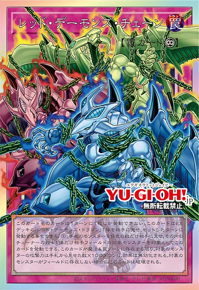 This card's art looks cool with the pink trap frame.>Continuous Trap>You can only activate 1 card with this card’s name per turn. You can activate this card the turn it was Set by revealing 1 “Red Dragon Archfiend” in your Extra Deck.>(1) Activate this card by revealing any number of monsters from your hand, then target Effect Monsters your opponent controls equal to the number of Tuners revealed +1; they lose 100 ATK for each card revealed, also their effects are negated. If the last of those monsters is not on the field, destroy this card.Pretty neat effect too. Can be a trap or a board breaker, but has neat counterplay downside built in.
