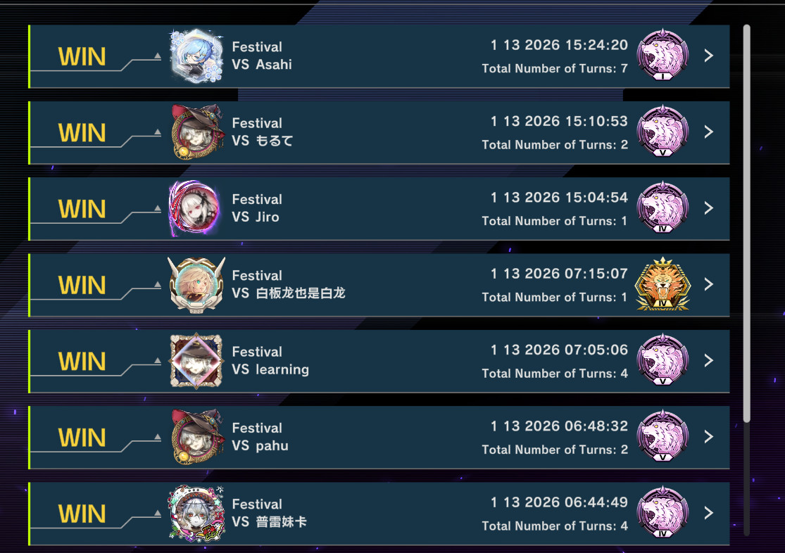 >Advanced>lose toss>opening with no HT>lose>Festival>lose toss>opening with no HT>lose