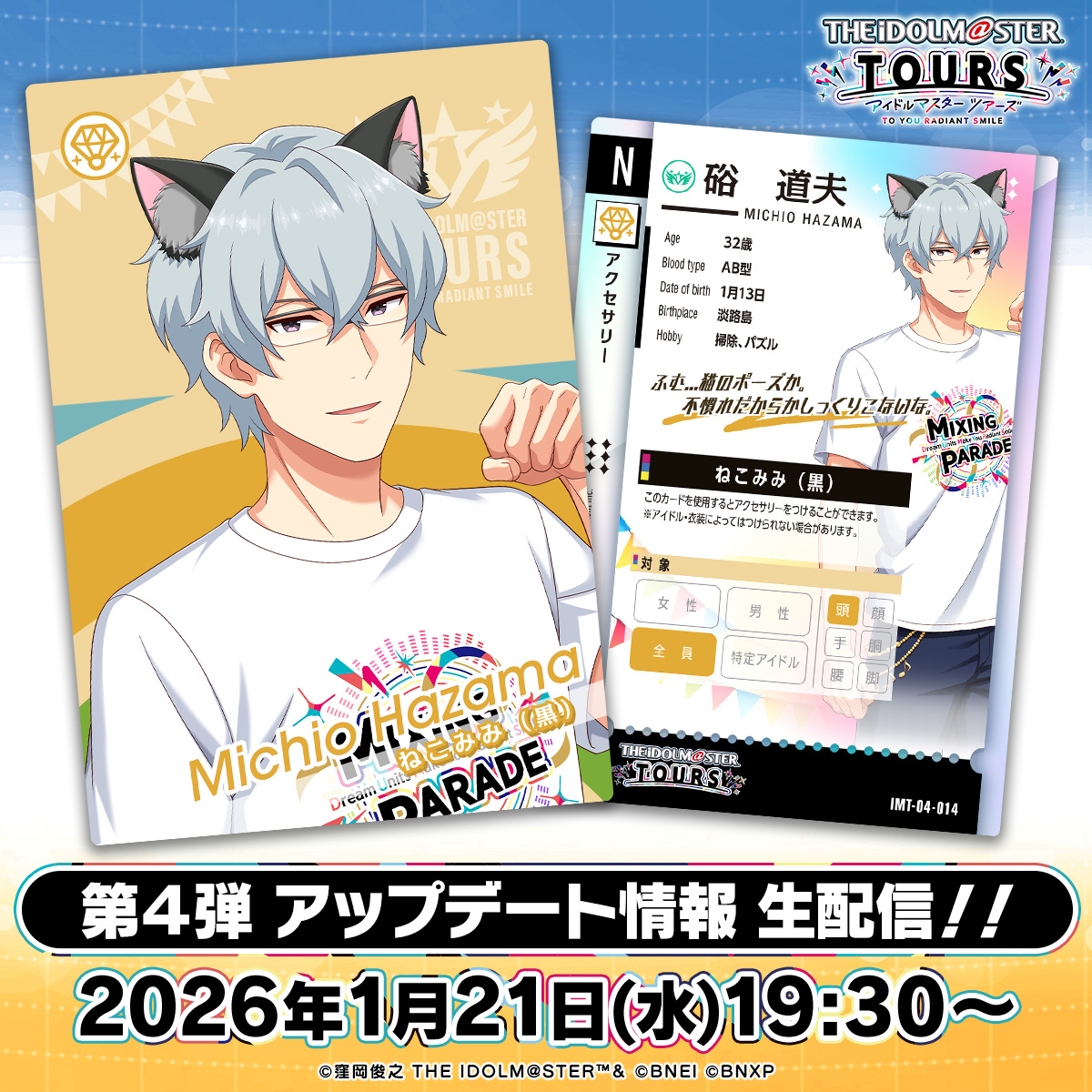 iM@S NEWS ARCHIVE- Archive of >>553538883: archive.is/BhDju>Million Live- TD Tamaki's "SONG FOR YOU! VOL.70" gacha ad: >>553642657- TOURS Rare Ichipomu card by Sunahamarabu: >>552731637 >>552731710 >>553588580>ALLSTARS- 765PRO ALLSTARS 2025~2026 Big Year-End Party x New Year's Party in KOTOBUKIY@ photos (Jan 13th): >>553590785>SideM- SM Michio's birthday 2026: >>553637437>Gakuen- GK Rinha might be short: >>553586745- Fake Temari: >>553622514>876pro- VL x Rebirth for You TCG collab announced: >>553581593 >>553591665>Other- Weiss Schwarz Season 2 Tricolor Fight promo (Jan 11th): >>553591342- Chikin references (Jan 13th): >>553630081 >>553630598 >>553630946- /@/ Sings "Fighting My Way": >>553624750>Fancomics- ML Iku accidental naming fancomic TL: >>553590834 >>553591730- GK Class 3-1 names Stella Edge fancomic TL: >>553601983 >>553602196 >>553602530 >>553602382 >>553602625