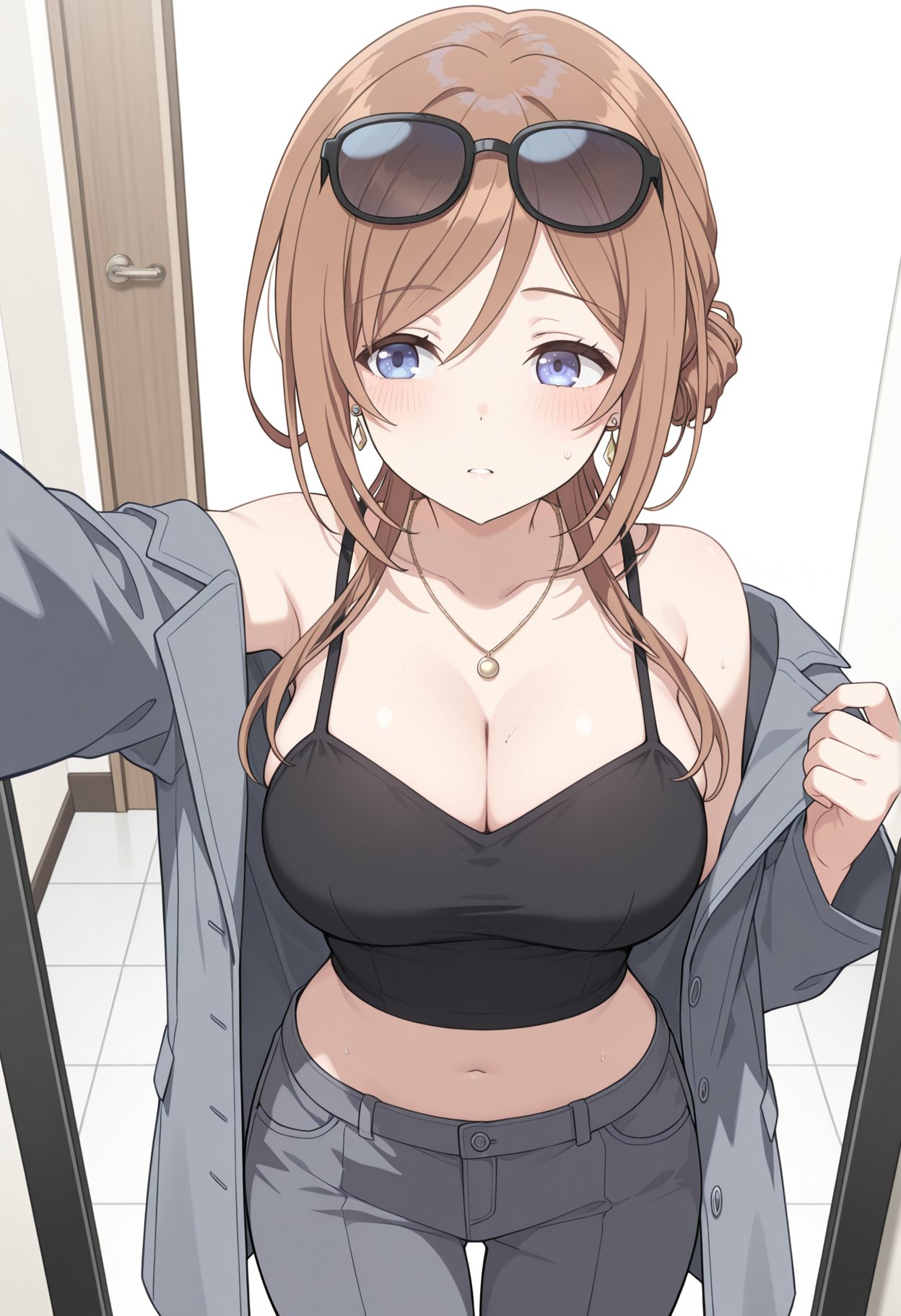 >>553690145>daisy dukes>unbuttoned>no underwear>the outline of her crotch is showing>but you still can't see her slit or even just its outline