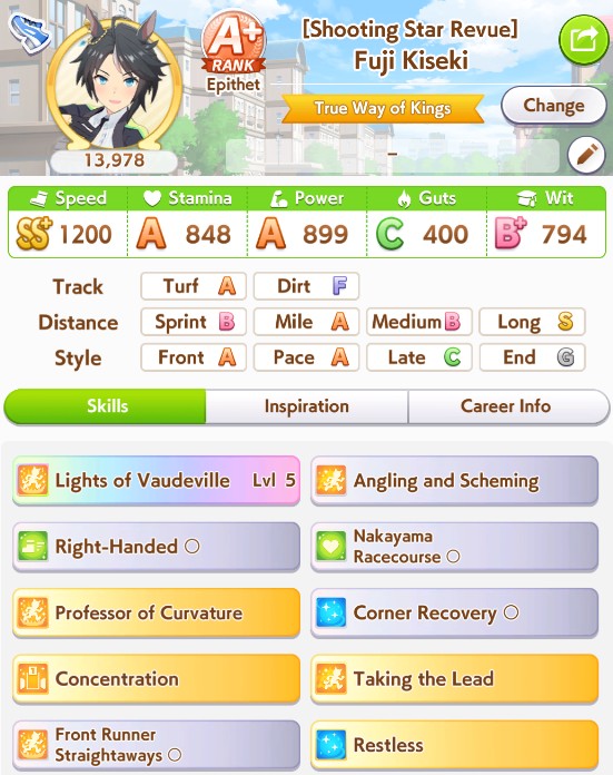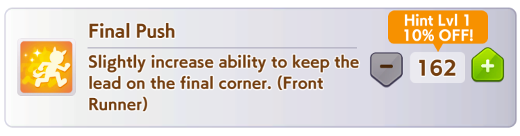 Capricorn is going to be a complete shit show. Wit maxing is actually detrimental to Lates/Ends because rushing is a win condition but building up Power gives way too much useless stamina. I don't know how to build for this one at all. Sweaty Zoomer feet