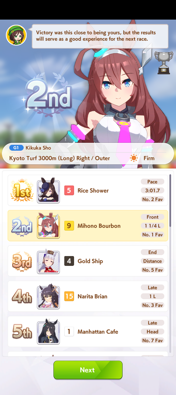 I've felt more defeated this CM than any other CMMy ends proc spurt+NSM and don't even touch xmas oguri, and I can't roll for her since I need carrots for bourbon, idk what to do reallydesu kinda bummed out, went from winning a lot of CMs in a row to feeling like I lost before it even started