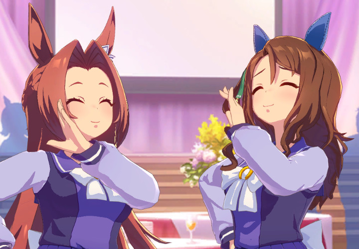 I'm too lazy to stack 4-5 screenshots of the exact same frames of this animation to remove the Career button sparkles but have this high res UI-less Seiun Sky faggy handwave. It is cute.