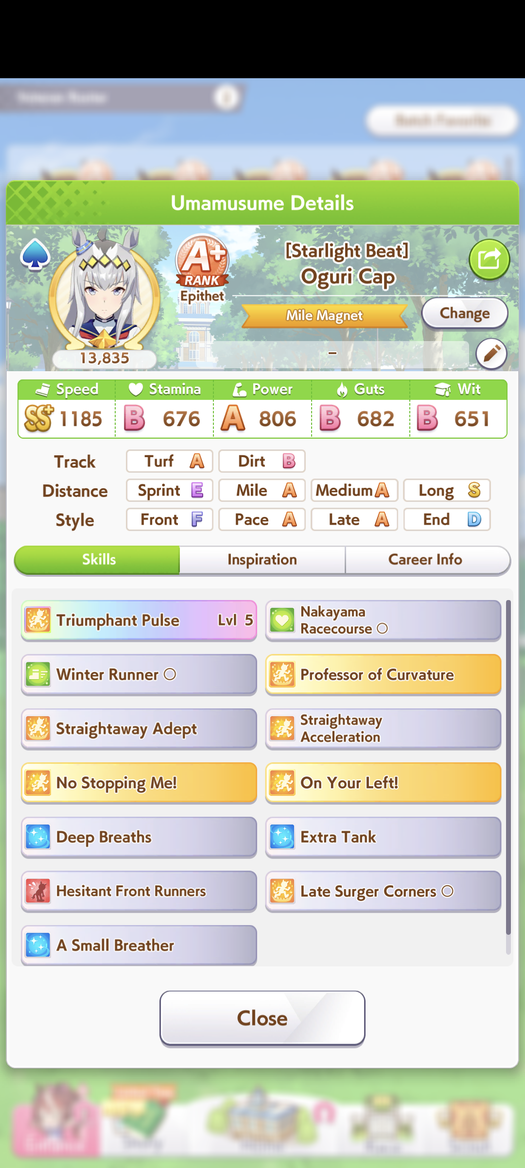Running Pace that isn't XOguri this CM is so soul-crushing. The only chance I'm beating a XOguri Pace is when they fail to witcheck recovery for their unique, and even then End closers will still catch up to my Pace. MEANWHILE XOguri's unique can make her escape end closers.I hate this game's uma favoritism