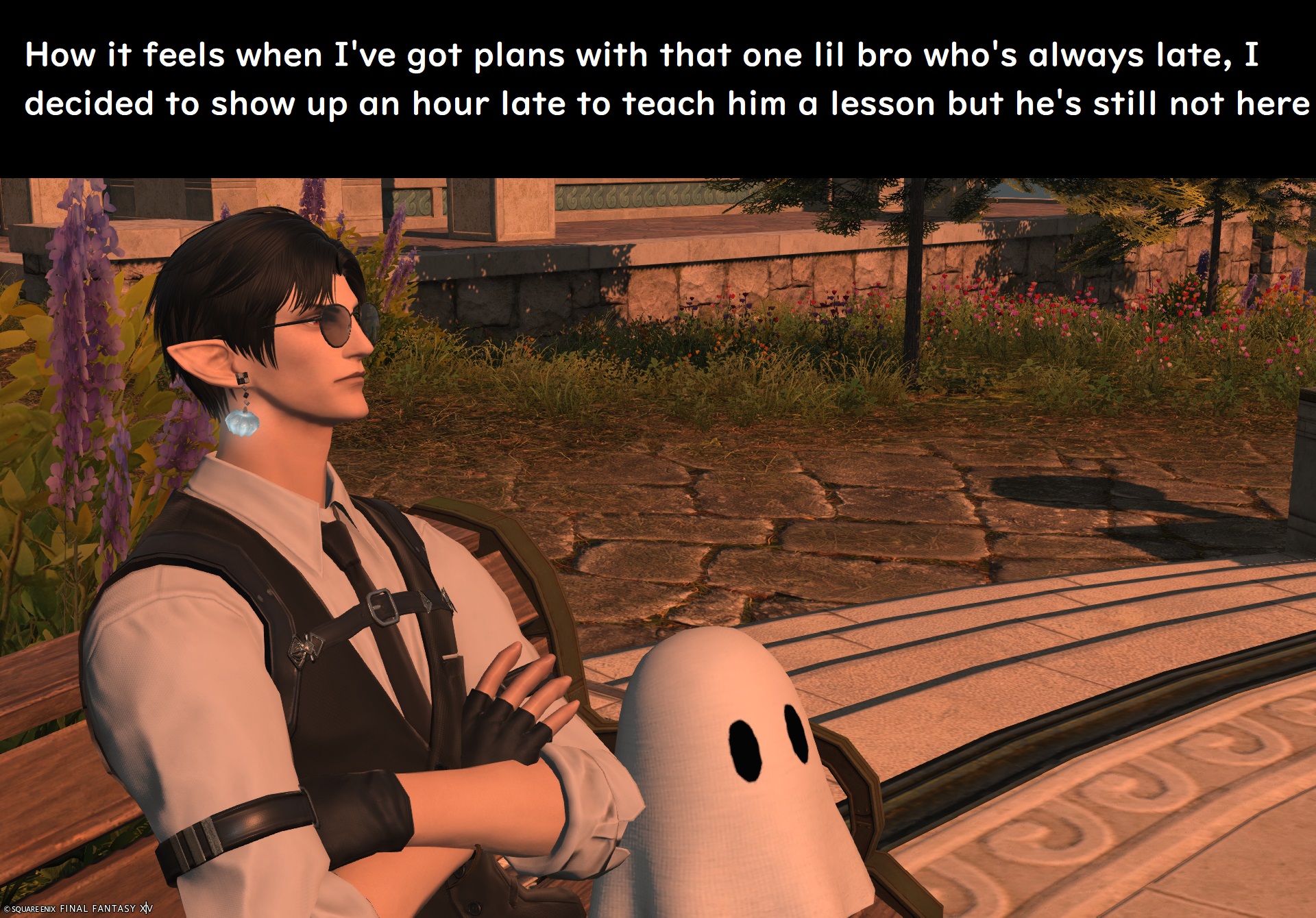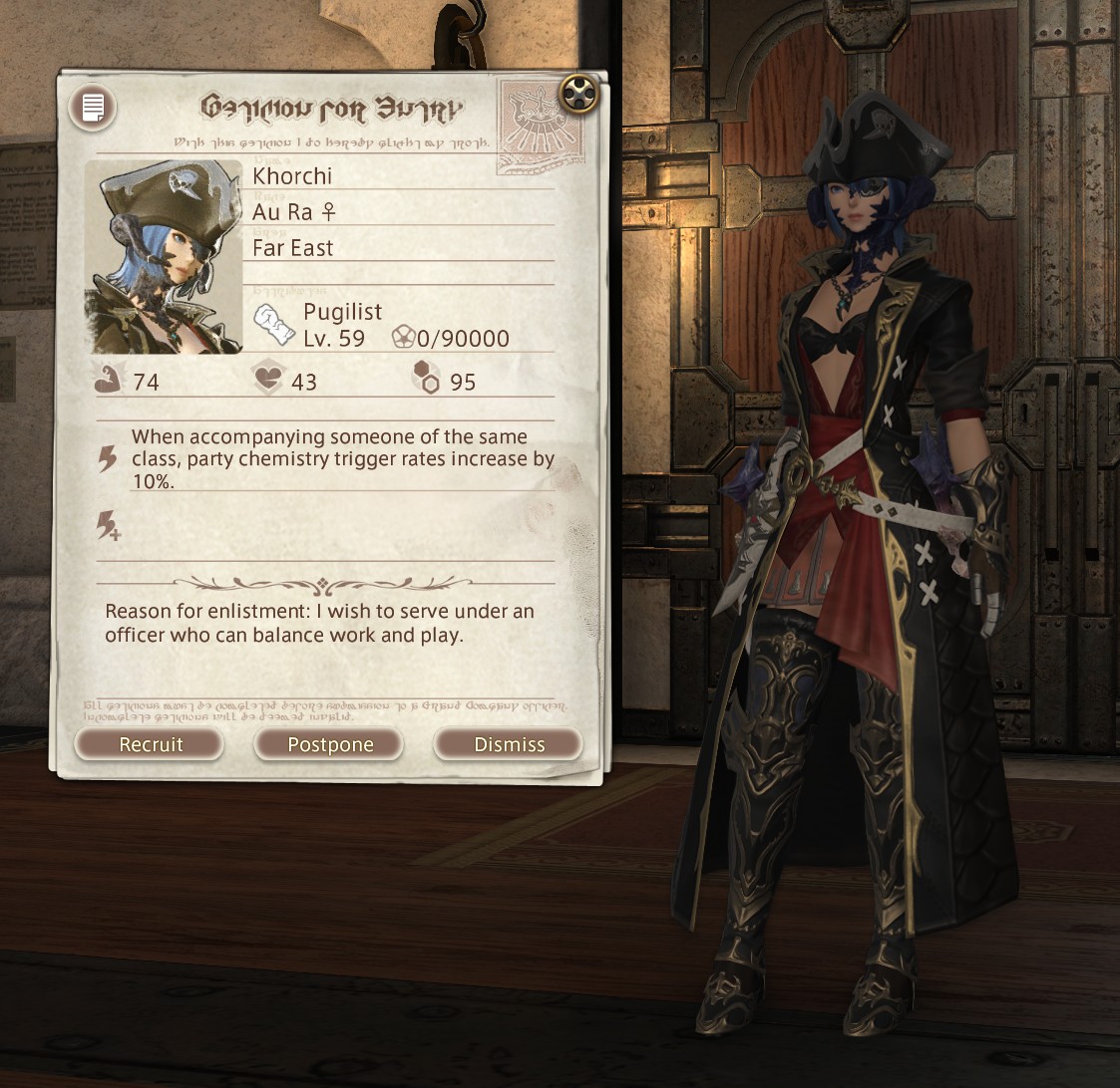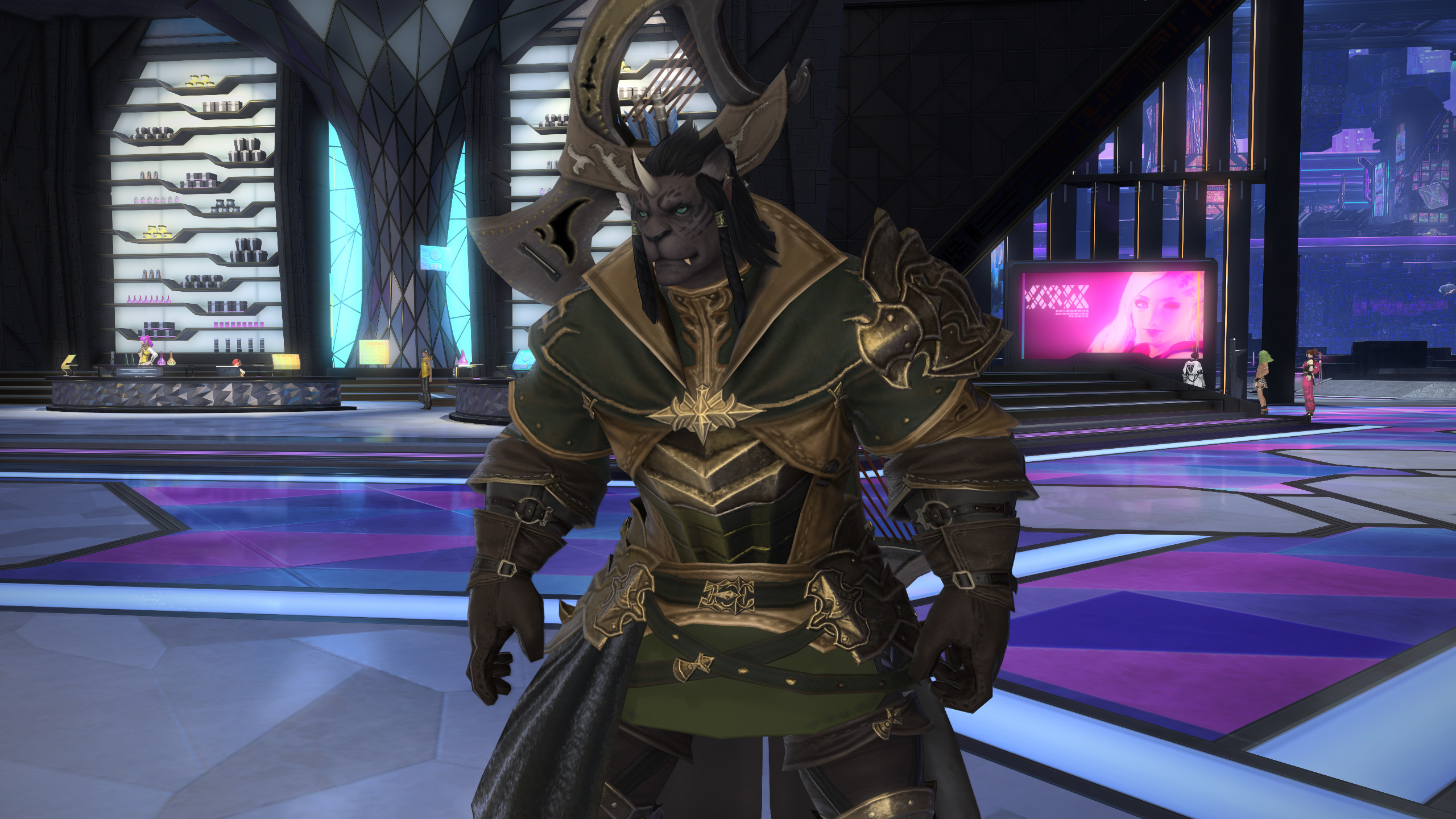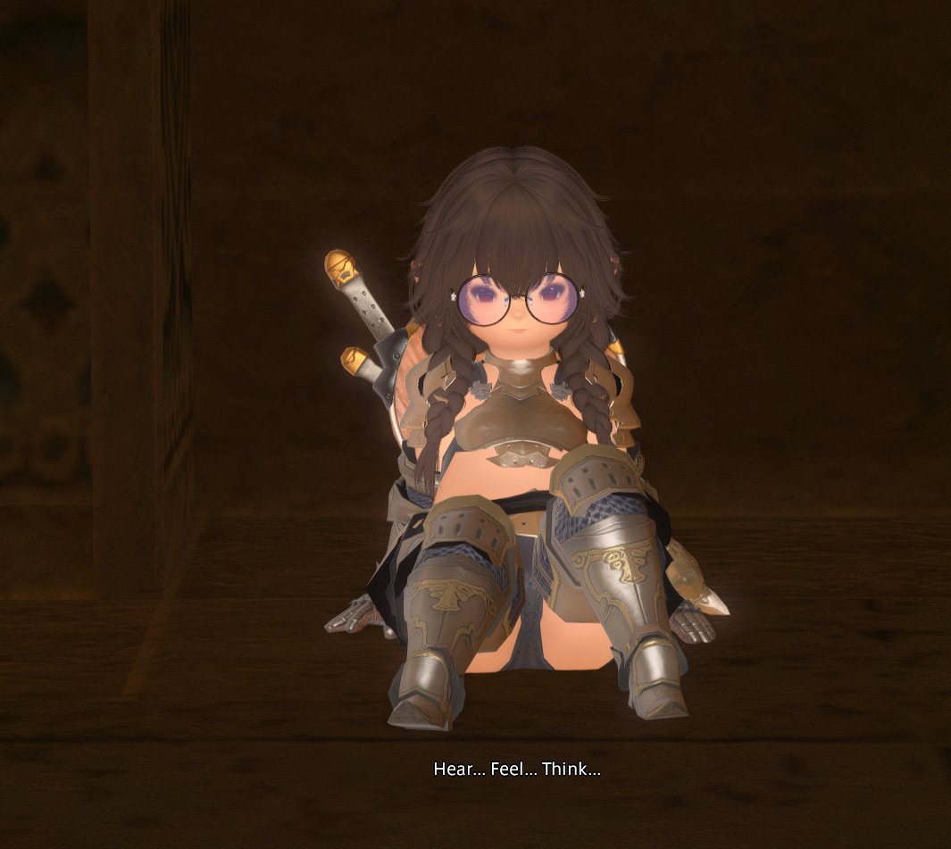 my ft sprout's backstory is she's a weakling gutter whelp who did gladiatorial combat against feral beasts out of desperation to make a living after her deadbeat shady merchant dad abandoned her so he didnt't have to take care of her but then she heard being an adventurer makes a lot of money so she's ditching that to pursue experiencing the world the dzmael coliseum gear is kinda lewd natty though and i think i gotta do a diff glam because i keep getting weird /tells from people while doing the msq