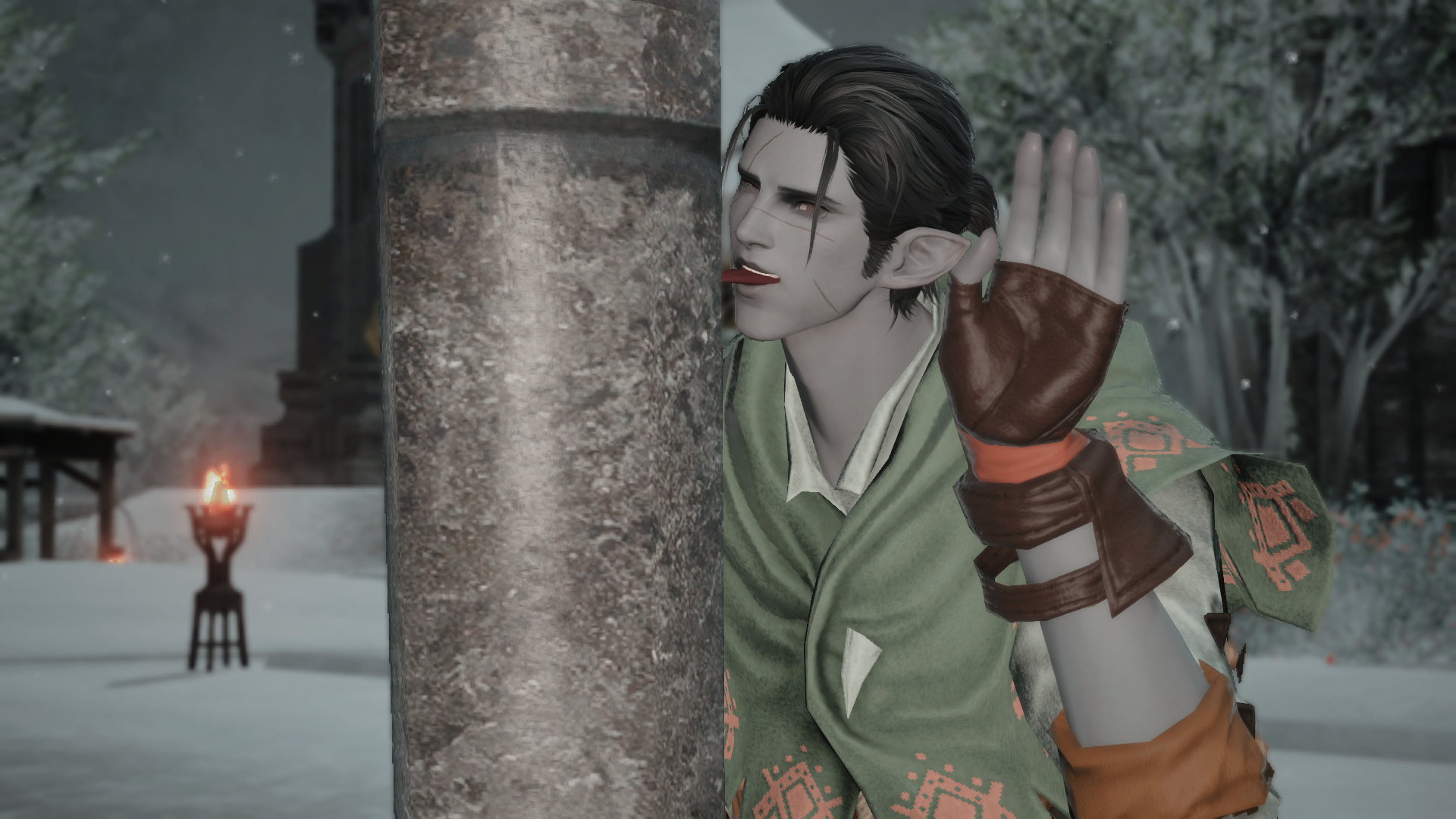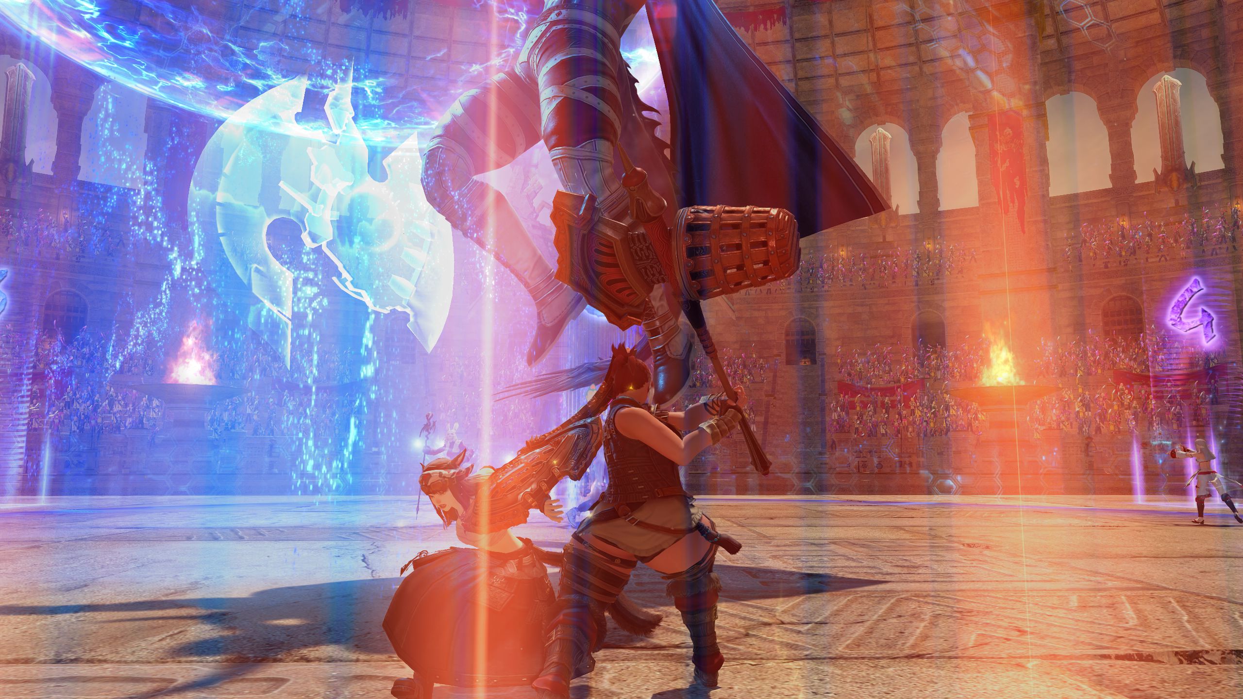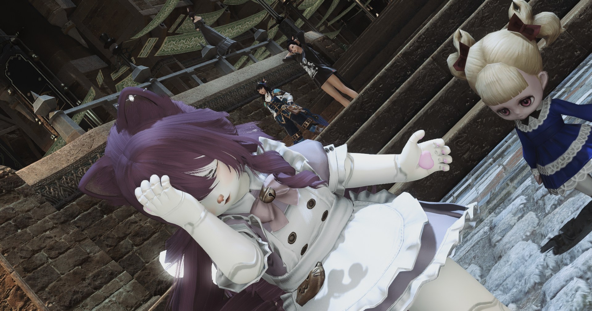 my ft sprout's backstory is she's a weakling gutter whelp who did gladiatorial combat against feral beasts out of desperation to make a living after her deadbeat shady merchant dad abandoned her so he didnt't have to take care of her but then she heard being an adventurer makes a lot of money so she's ditching that to pursue experiencing the world the dzmael coliseum gear is kinda lewd natty though and i think i gotta do a diff glam because i keep getting weird /tells from people while doing the msq