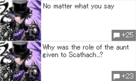 all those characters kinda confirm nasu is writing this not that there was much doubt cuz i assumed he’d be the one to provide the setup for events and the main story continuation anyway but nice. although one bad thing would be that nasu still writing for fgo is not what tmfags expected so they’ll be seething extra hard now