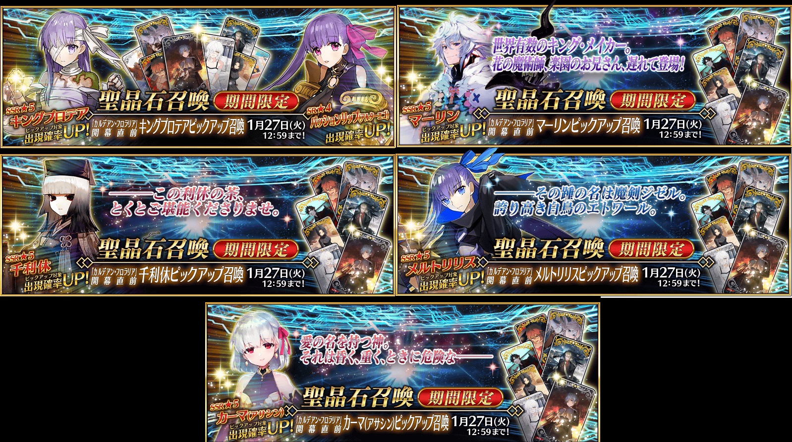 Previous: >>553562429>F/GO Chaldea Satellite Station 2026, Fukui:●Saturday January 17, 17:00 JST.▶Cast: Haruki Ishiya (Beryl Gut), Ayako Kawasumi (Artoria Pendragon), Karin Takahashi (Van Gogh).https://www.youtube.com/watch?v=cExGizUYCS4>"The Beginning of Aftertime":●Release date: January 7 JST.▶Costume dress for U-Olga Marie available at Dress Making Shop after clearing.https://news.fate-go.jp/2026/01/after_time/>Fate/strange Fake PU summon:●January 9~16 JST.5*Archer Gilgamesh (limited)5*Lancer Enkidu (permanent)https://news.fate-go.jp/2026/2026_f_s_f_cp_pu/>2026 New Year's Campaign:●January 1~15 JST.▶Master level increased to 200.▶The chances of obtaining a great/super success when strengthening a servant/CE will be double.▶AP consumption for Ember Gathering and Training Grounds will be halved.https://news.fate-go.jp/2026/newyear2026_cp/>2026 New Year PU summon:●January 1~14 JST.5*Saber Lord Logres (limited)https://news.fate-go.jp/2026/newyear2026_pu/>/fgog/ Friendlist form and spreadsheet (2026):https://forms.gle/WK4dwSC6Mn2WQfZu8https://docs.google.com/spreadsheets/d/1leQ09m5klFajbCcededkANJfeMiAmVz-PbCI_r7xyXc/edit?usp=sharing>Utility links:https://pastebin.com/iaWmXAq7