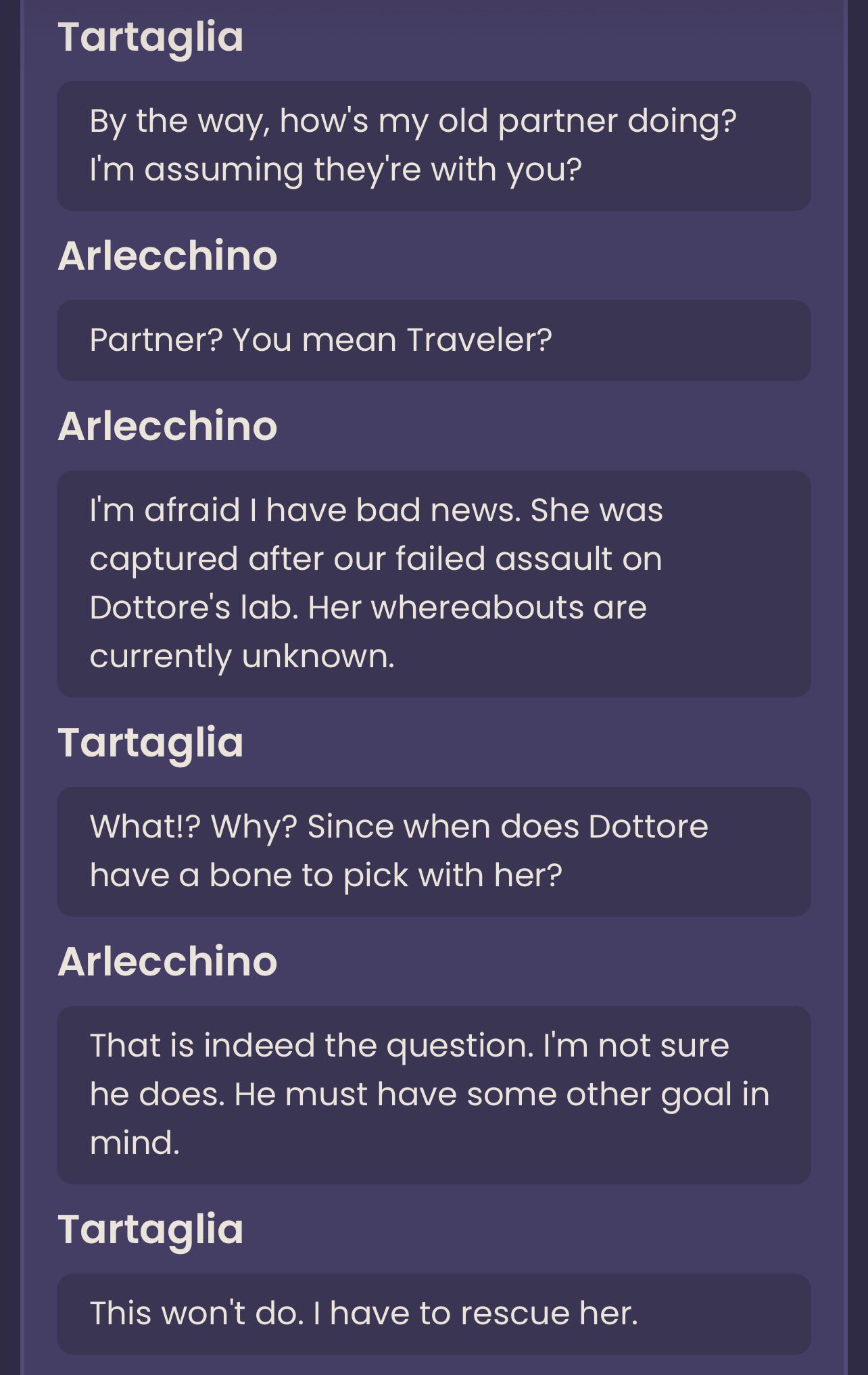 Dottore genuinely loves Columbina in his own way but he loves Aether more