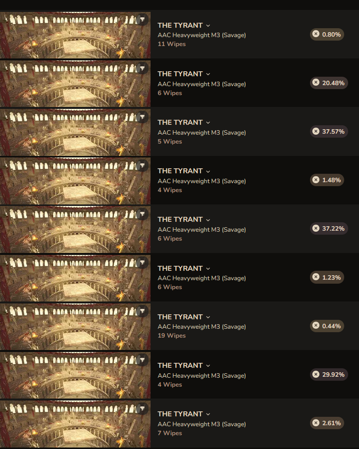 best pull was before the reset, but we had too many deathsI'm consistent at every single mechanic, but it's not enough...it feels like shit, spent so much time alone on aether grinding PF since it came out, didn't win any loot, didn't clear the second floor, my m9s clear was my worst pull so my parse looks awful, and I hear m11s is even worse in PFit was new and fun for a while, but I need to find a way to make this less miserable..