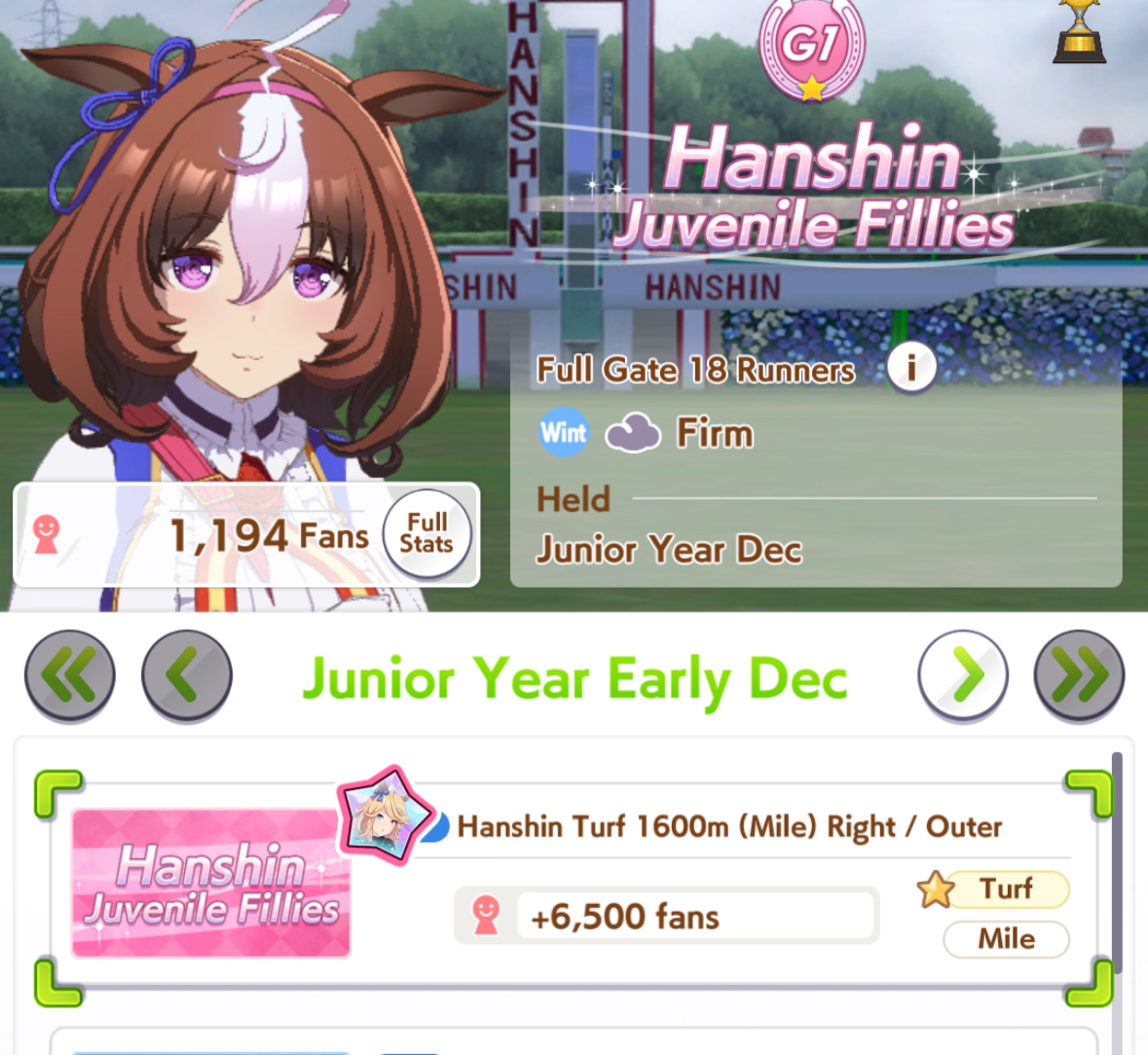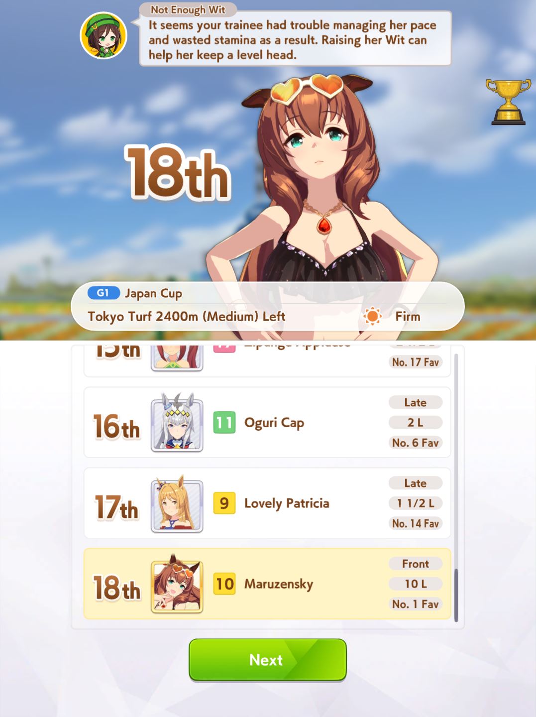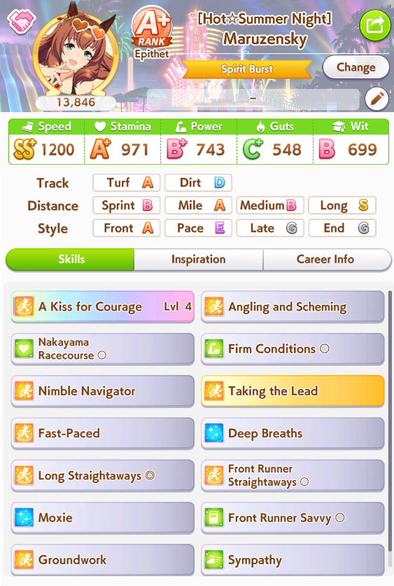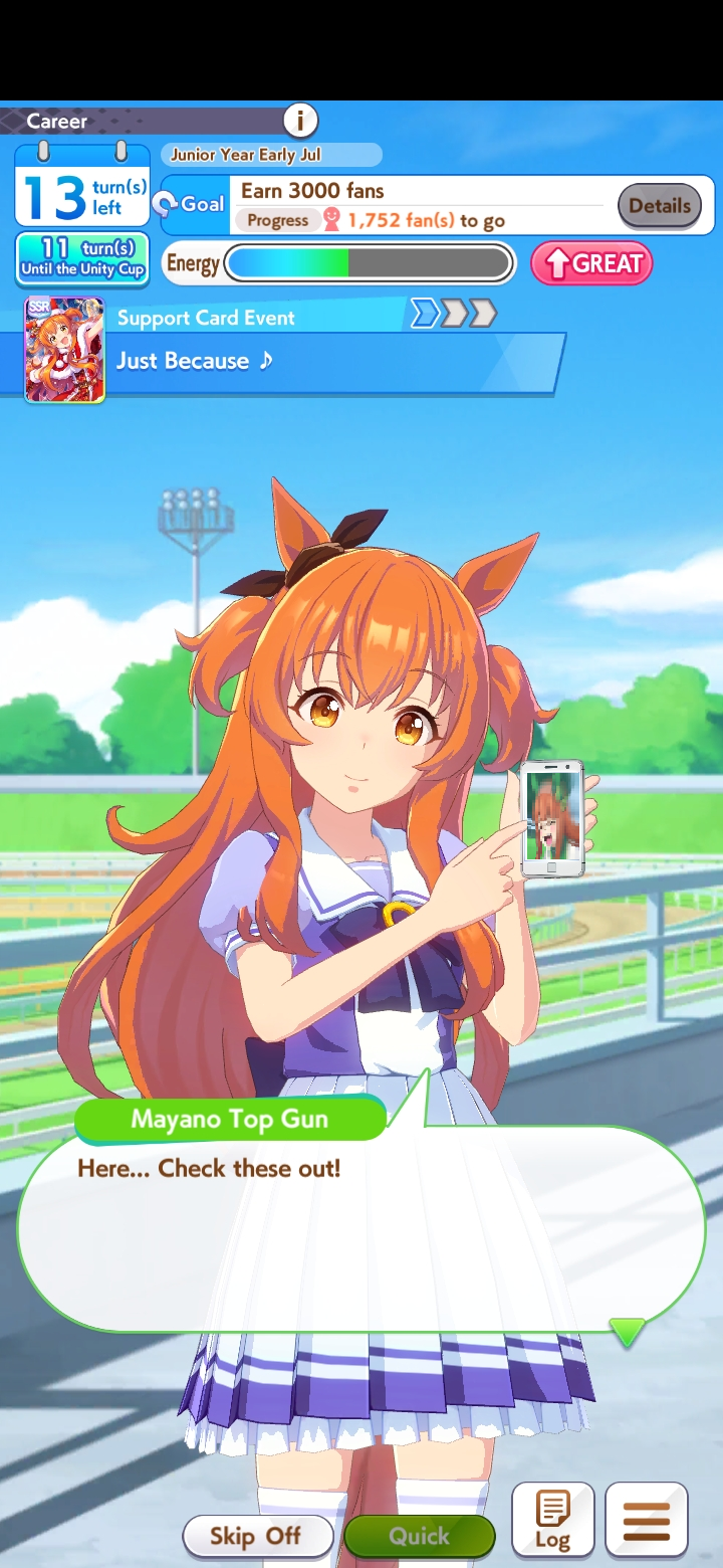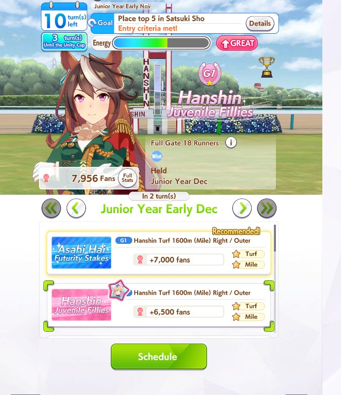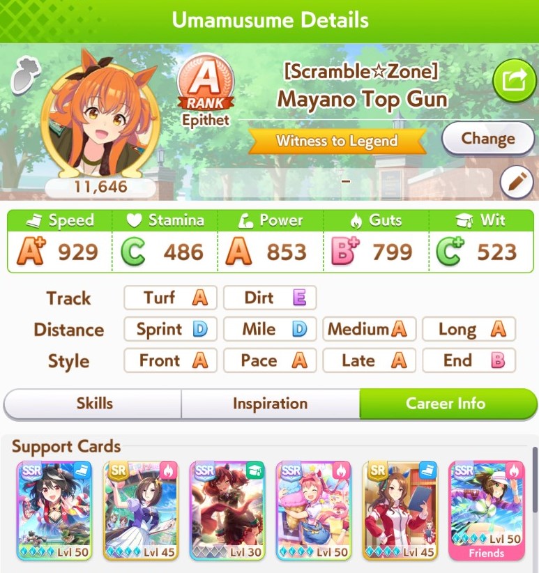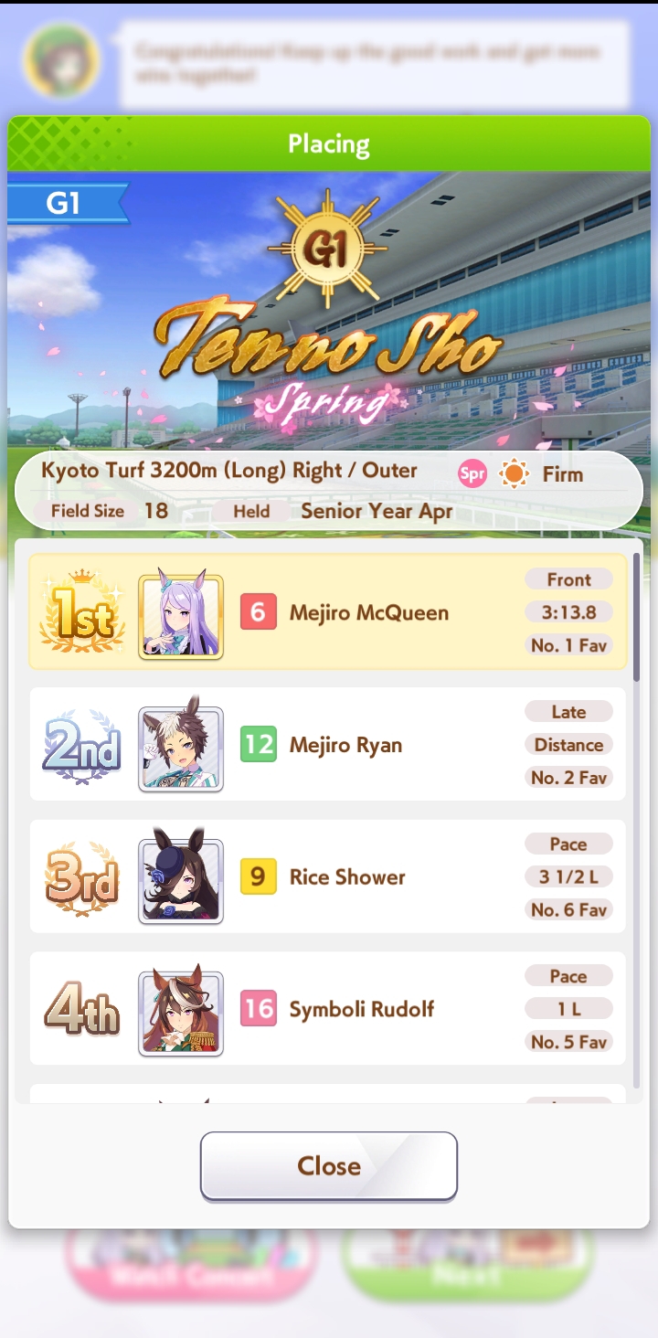Still need ~350 stam before Kikuka Sho, maybe around ~450 just to survive the Akiten and Arima Kinen. Failed Sprinter Stakes Classic and Takatsunomiya Kinen though so it's a brick. Wit 2* also hurts