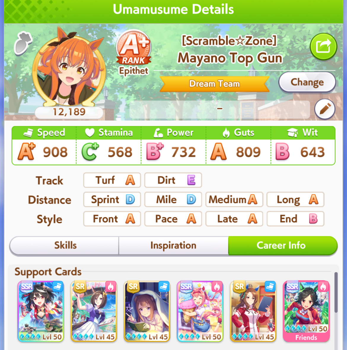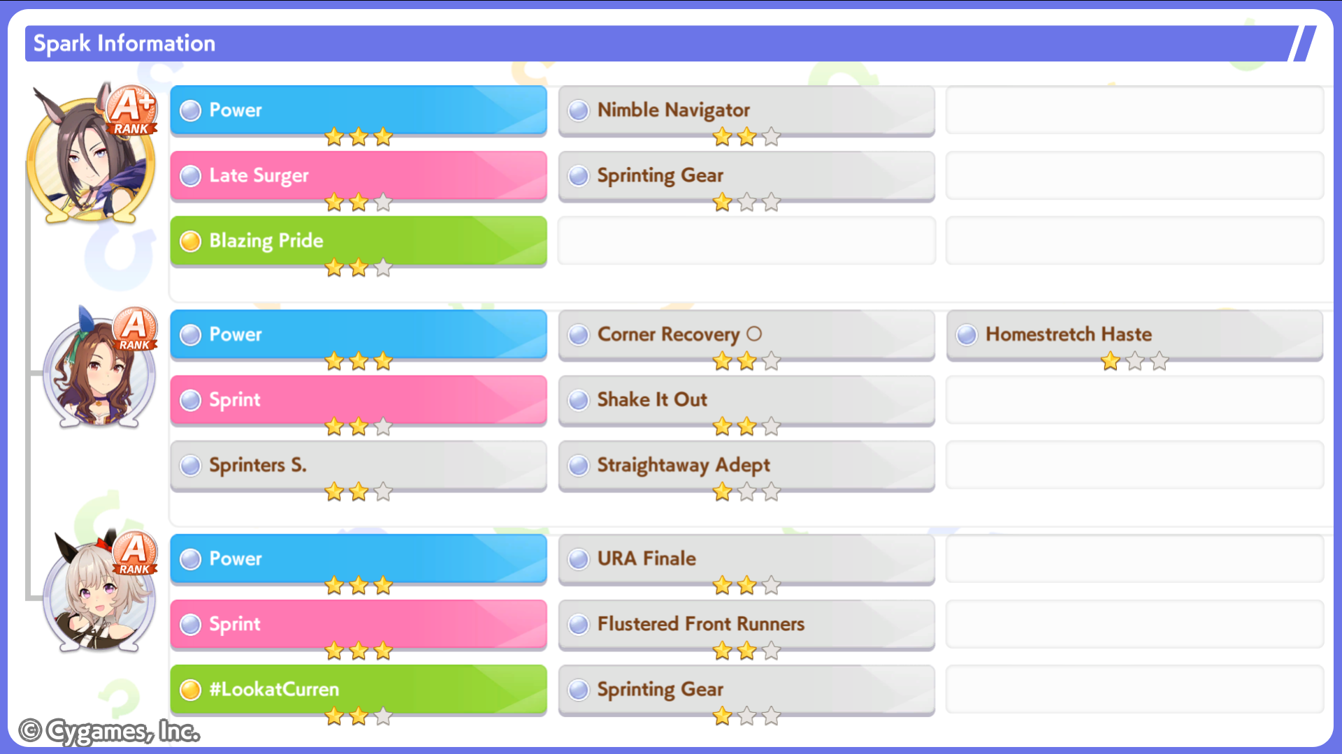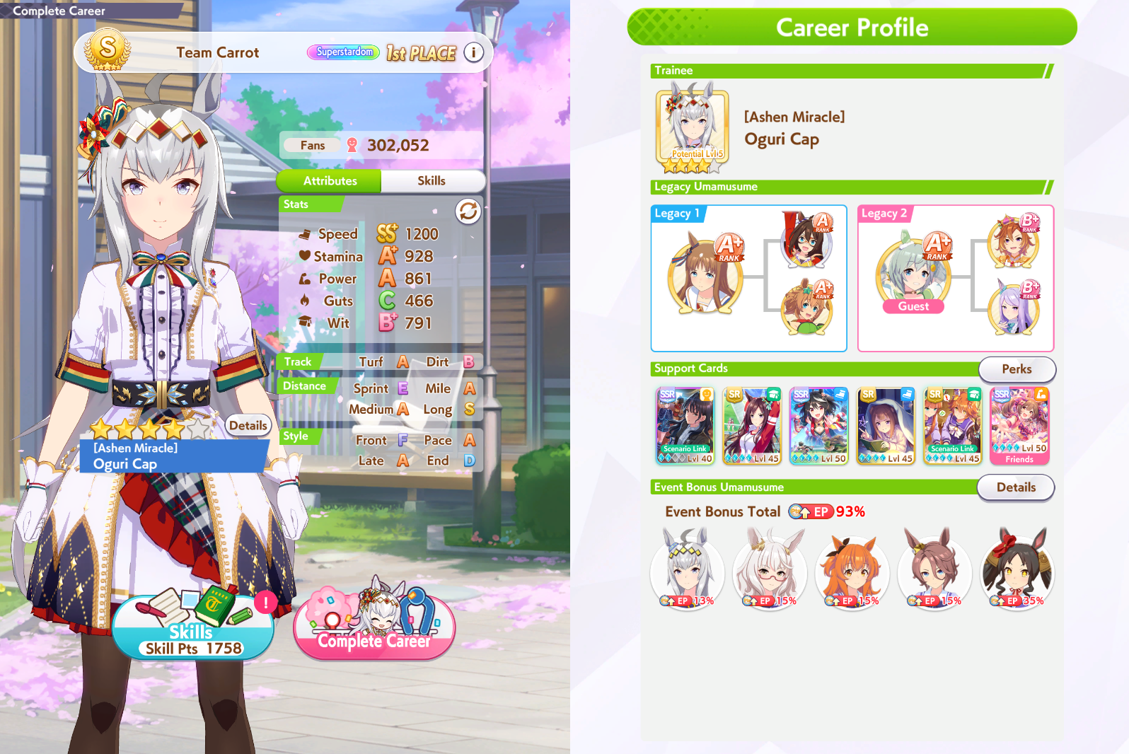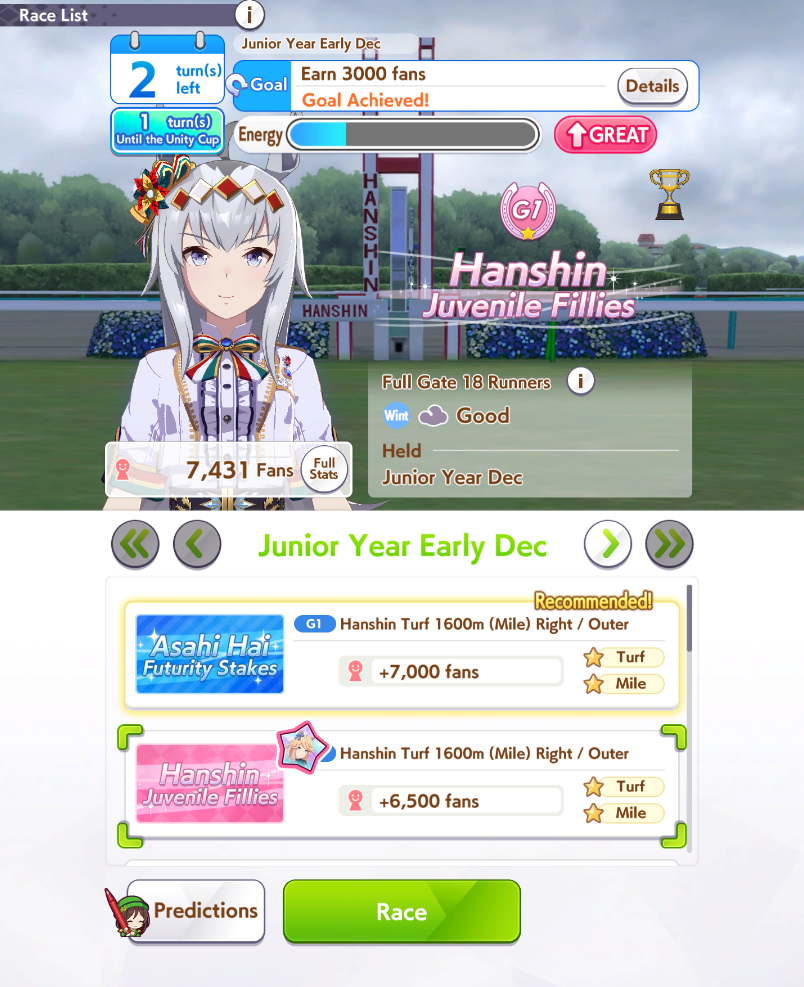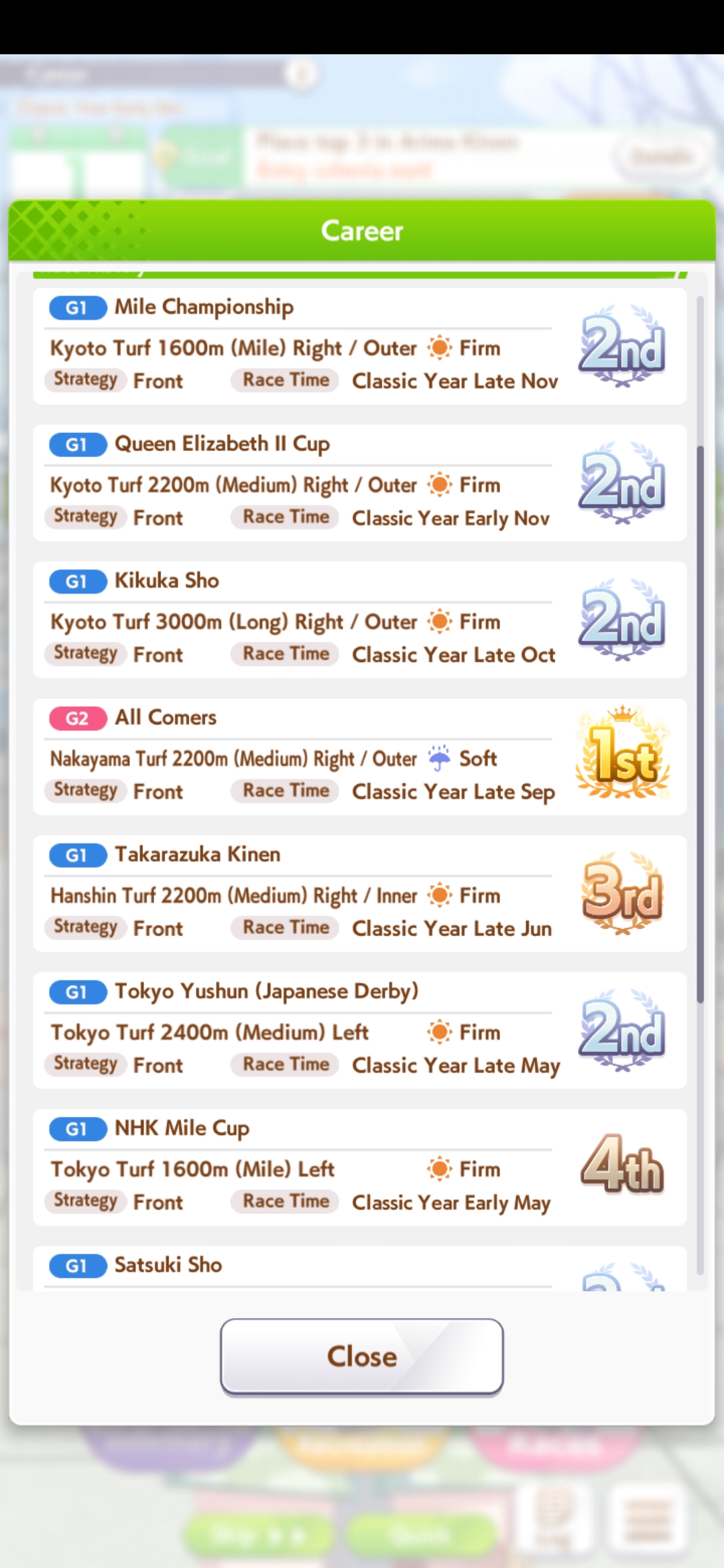 Still need ~350 stam before Kikuka Sho, maybe around ~450 just to survive the Akiten and Arima Kinen. Failed Sprinter Stakes Classic and Takatsunomiya Kinen though so it's a brick. Wit 2* also hurts