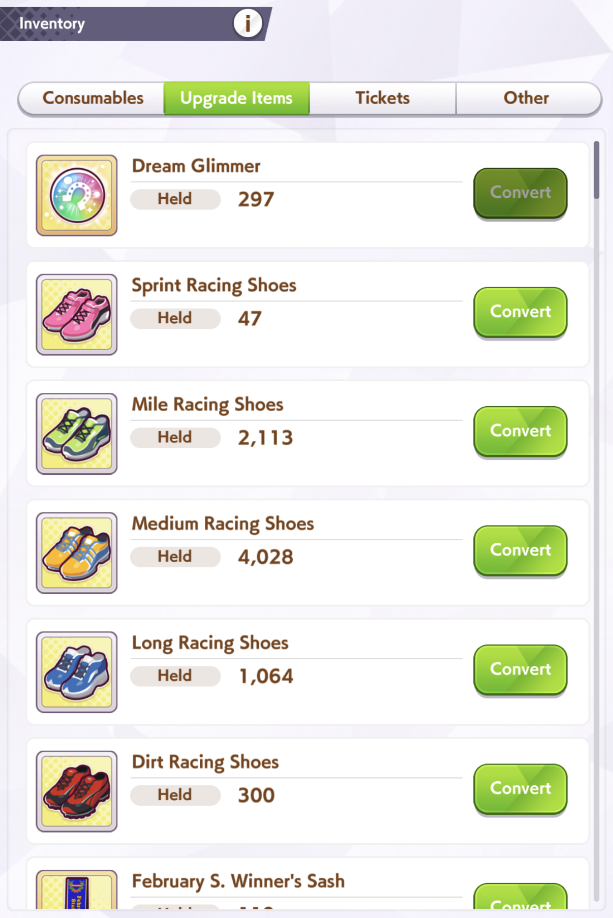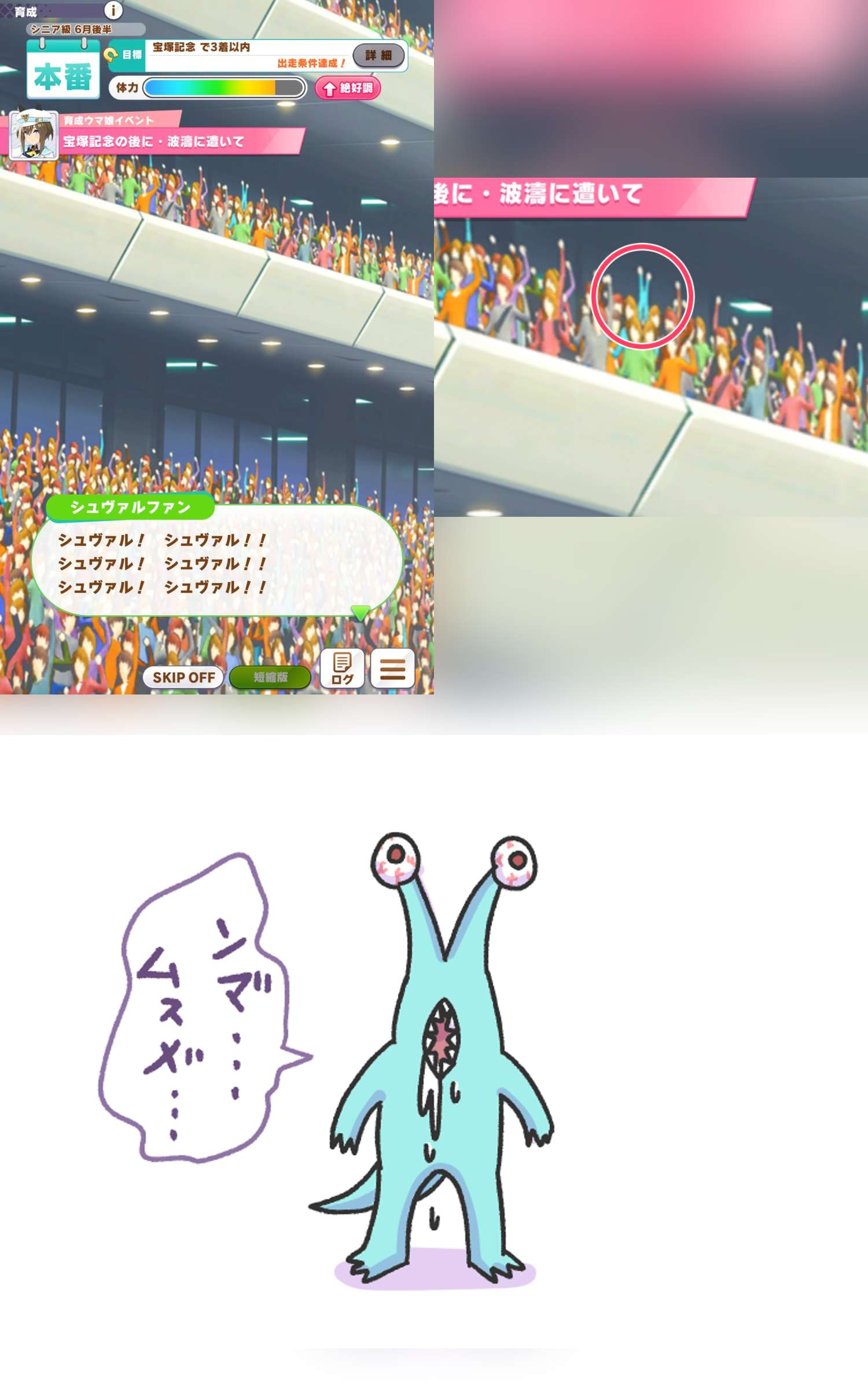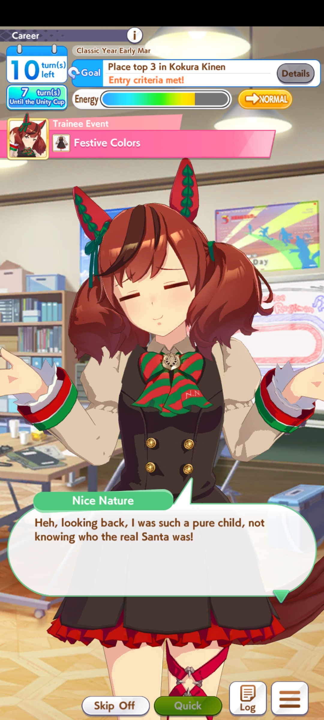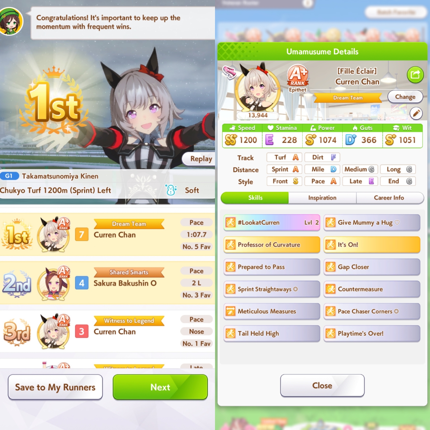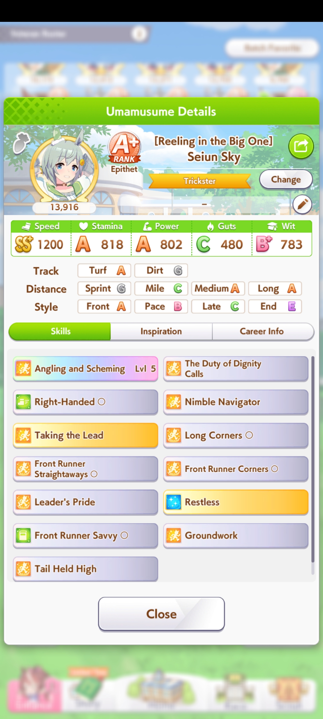 Still need ~350 stam before Kikuka Sho, maybe around ~450 just to survive the Akiten and Arima Kinen. Failed Sprinter Stakes Classic and Takatsunomiya Kinen though so it's a brick. Wit 2* also hurts