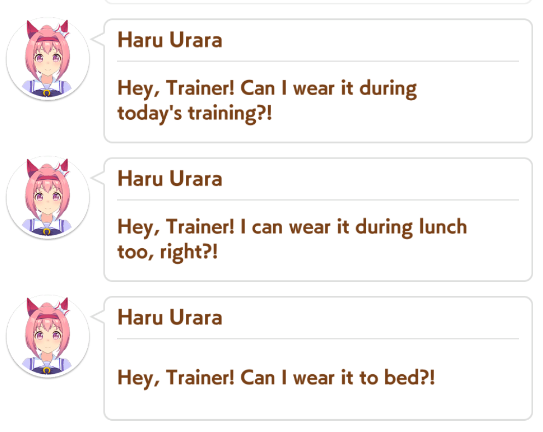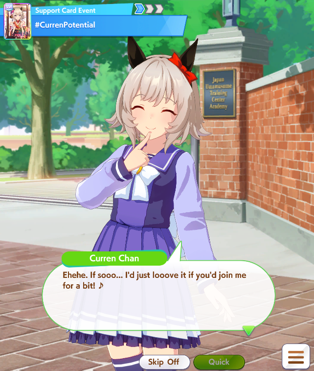 I wish they'd make a game that lets us run around and freely explore Tracen Academy, and meet the umas. The school's design seems consistent enough throughout the game and all the anime, and they've always kept track of roommates and things like that.Even if it's something basic, like you're playing a young, upstart trainer who just made it to Tracen Academy and you're determined to guide those stupid sexy horses to victory. I'd play it.I know it will never happen because it takes too much time and effort that could otherwise be spent on the main game and make way more money, but the possibilities...