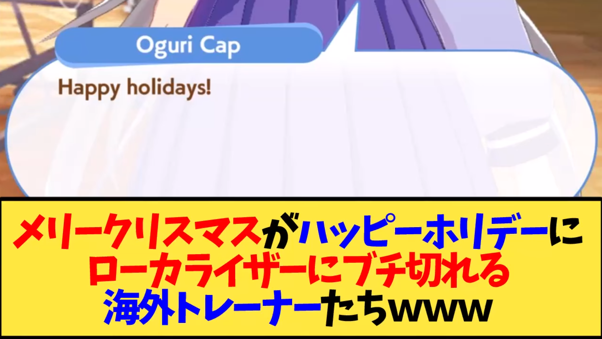 Previous: >>553646516>Global Game NewsLink your account to Cygames iDCurrent Scenario: Aoharu Hai aka "Unity Cup"Current Rate Up Trainee: Christmas Oguri Cap (3* alt), Christmas Biwa Hayahide (3* alt), Mejiro Dober 3*Current Rate Up Support Cards: Narita Taishin (SSR), Mayano Top Gun (SSR), Daitaku Helios (SSR), Vodka (SR)Late January - Sagittarius Cup - Nakayama Turf 2500mhttps://umamusume.com/news/100040/https://pages.snep.pw/uma/anni-skill-changes/>JP Game NewsCurrent Rate Up: Gentildonna 3* and Orfevre 3* rerun, NY Sakura Laurel 3*, NY Ikuno Dictus 3*, Oguri Cap 3* (Cinderella Form), Stay Gold 3*, Air Groove (Speed SSR), Fine Motion (Power SSR)New Scenario "Yukoma Hot Spring" releasedTimeline: https://uma.moe/timelineCygames Webstore: https://webstore.cygames.com/en/umamusume_en/>Thread Clubshttps://rentry.co/umaglobalclublistYou must be E3 (20k points) to join a circle. Apply with /uma/ or /vg/ in your profile or post ID in the thread.>All Guides & Resourceshttps://rentry.org/uma26Game databasehttps://gametora.com/umamusume (Click the gear to switch between JP / global server info)A basic guide for newfagshttps://rentry.org/umaglobalFind networks if your region is blocked from the game or clienthttps://www.umavpn.top/93Seiyuu & Concertshttps://rentry.org/umstUma Texthttps://umareader.idsmile.xyz/
