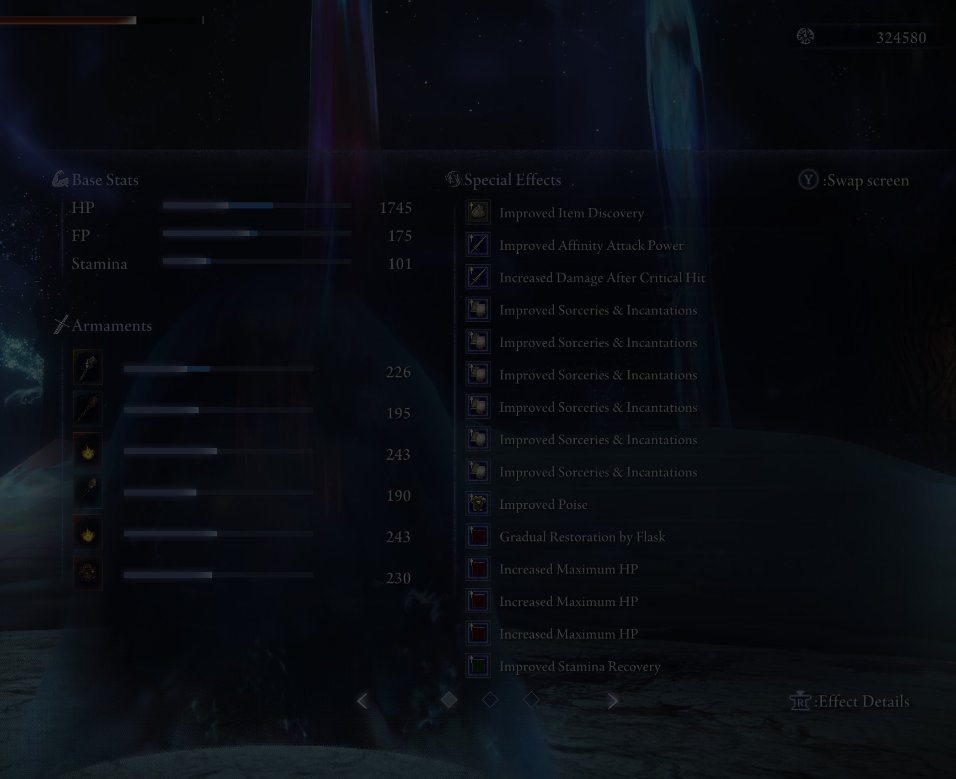 Geegees Mystery Nigga bugs. Had lots of fun skills to use that run. Thought that Golden Order Greatsword I picked up was the one that did the fuckhuge holy wave, but it wasn't and it sucked.