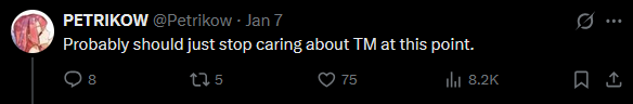 >>553734102>She mostly got cucked by being released in the period when people were being angsty about the game.There was a pretty widespread "don't bother with the GSSR" sentiment that was completely unsurprising based on the fact that people were expecting a major announcement on the NYE stream and got jack shit.