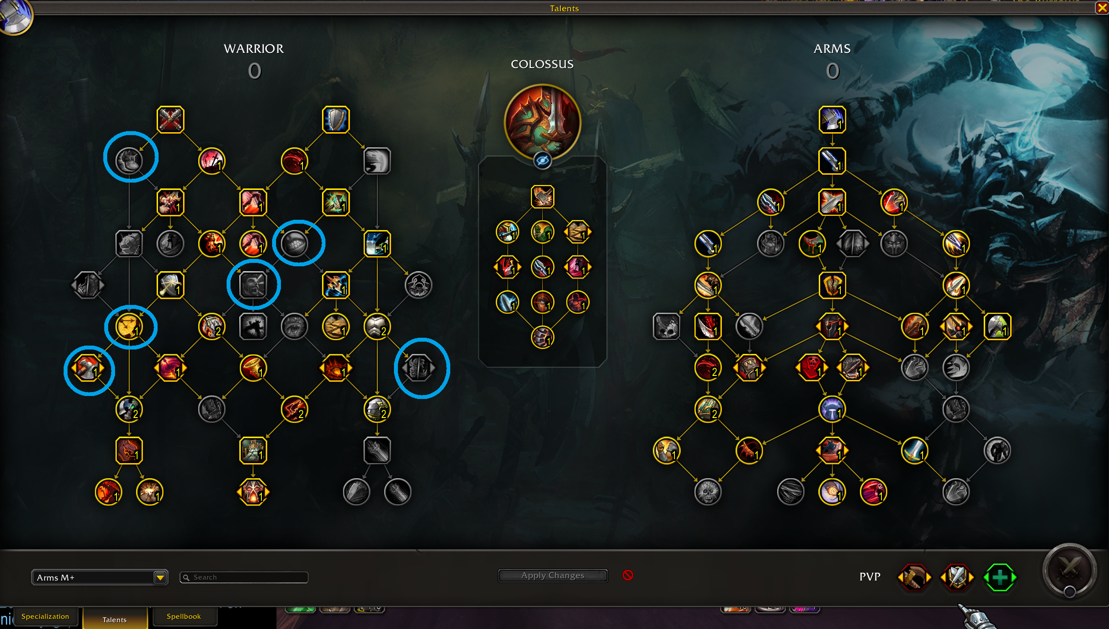 >>553725717It's pretty basic!Take wrecking throws for dungeons with shields (like Eco or Streets)The 5% dmg on kick on dungeons with bosses you can freely kick all the time (HoA, Priory)5% movespeed on Ara and everywhere elsePiercing howl IMPORTANT on Gambit at higher keys to help with the murlocs running awayRallyng Cry is kind of garbage right now but it will be buffed in Midnight I heard? It's good for some high keys during some bosses trashes but it's not that great/mandatoryYou don't touch the Arms treeBut you can freely move those 2 points in the Warrior tree (I highled them with a blue circle)