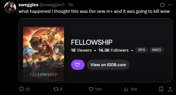>>553733362impossible to know because all the streamers and tubers who were talking mad shit about wow then moved onto some other garbage FAILURE got put on the blacklist from whence there is no return.
