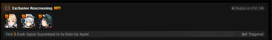 Previous: >>553717778>NewsAgent Record | Ariahttps://www.hoyolab.com/article/43039871Agent Record | Sunnahttps://www.hoyolab.com/article/43037944Version 2.5 Special Programhttps://youtu.be/Ldeqt2WMiYMTGA 2025 Special Videohttps://youtu.be/X-g1N9mNjzs>Newest Trailer/Teaser/Character demohttps://youtu.be/35fRoOYhE6Y (EN)https://youtu.be/BSKG5nhlj5s (JP)https://youtu.be/D_MtaEZRy3E (EN)https://youtu.be/eJBlfglfs-4 (JP)https://youtu.be/9Lshum4Peqw (EN)https://youtu.be/oCcNiUZ5ogU (JP)https://youtu.be/TU5Bt8MLPjk (EN)https://youtu.be/bviZmH3w5ew (JP)>Upcoming Events for 2.5https://zenless.hoyoverse.com/en-us/news/161728All-New Program 12/29 - 02/05Special Visitor 12/29 - 02/09Potential Hypothesis New Chapter Reforged 12/29 - 02/09Sword Seeker Chronicles 12/31 - 02/05Joint Investigation: The Divine Maze 01/03 - 01/22Shadow Riptide Clash 01/09 - 01/26Wish Filing Station 01/14 - 02/02Advanced Bounty: Area Patrol 01/16 - 01/21"En-Nah" Into Your Lap 01/21 - 02/05Angels and Delusions of Muse 01/21 - 02/05Data Bounty: Combat Simulation 01/30 - 02/04Angels of Delusion Training in Progress 01/30 - 02/09>Redeemable codes (claimable in-game or online)https://zenless.hoyoverse.com/redemptionZENLESSGIFTZZZCREATOR25ZZZ25MINAZHAOISFREEMEETTHEVOIDHUNTERShunguangWinterGiftZZZ20265OZ2HDP95I>Resources and useful linkshttps://rentry.org/zzzlinkshttps://rentry.org/ZZZ-Friendshttps://rentry.org/ZZZ-Guilds>/zzz/ OP pastebin (use this if making new thread):https://pastebin.com/PzbMf13P